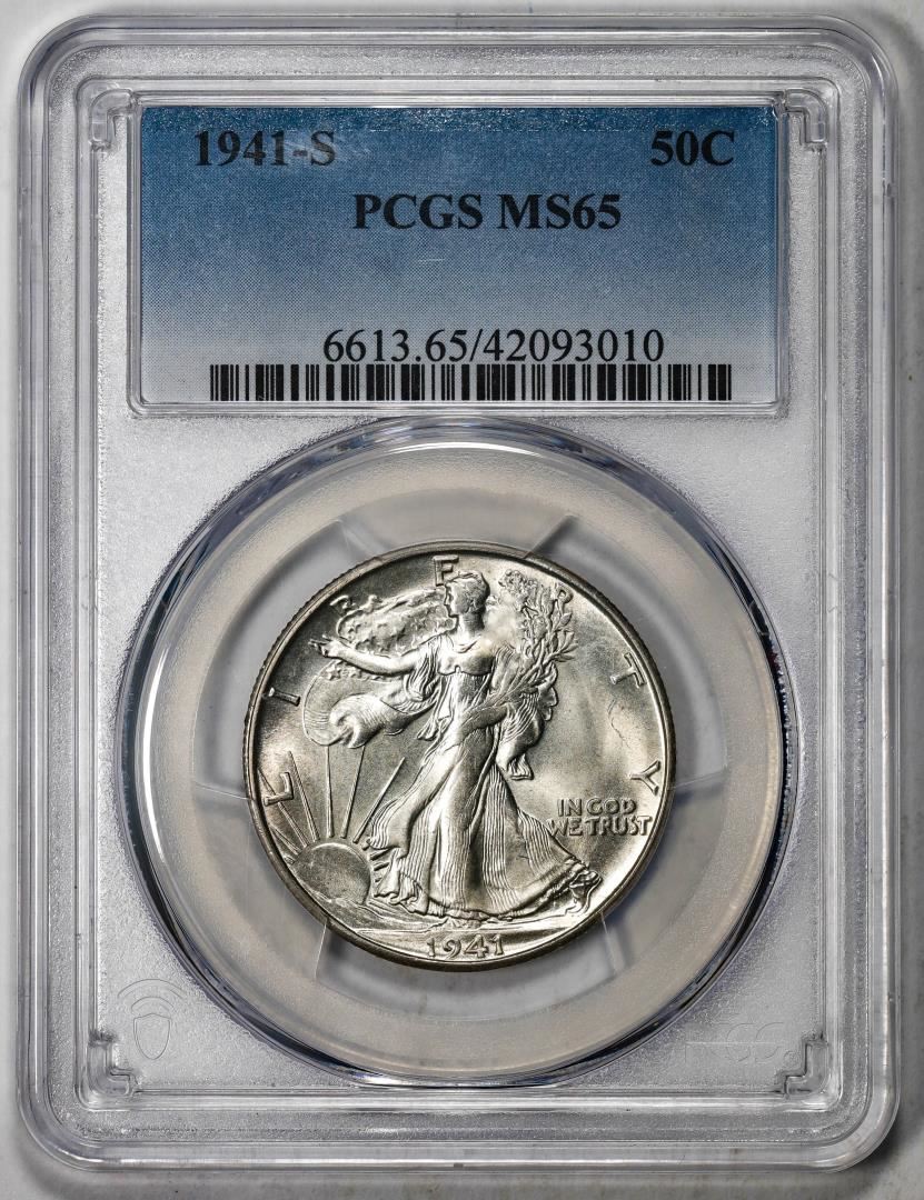 One 1941-S Walking Liberty Half Dollar Coin PCGS MS65. PCGS Graded.