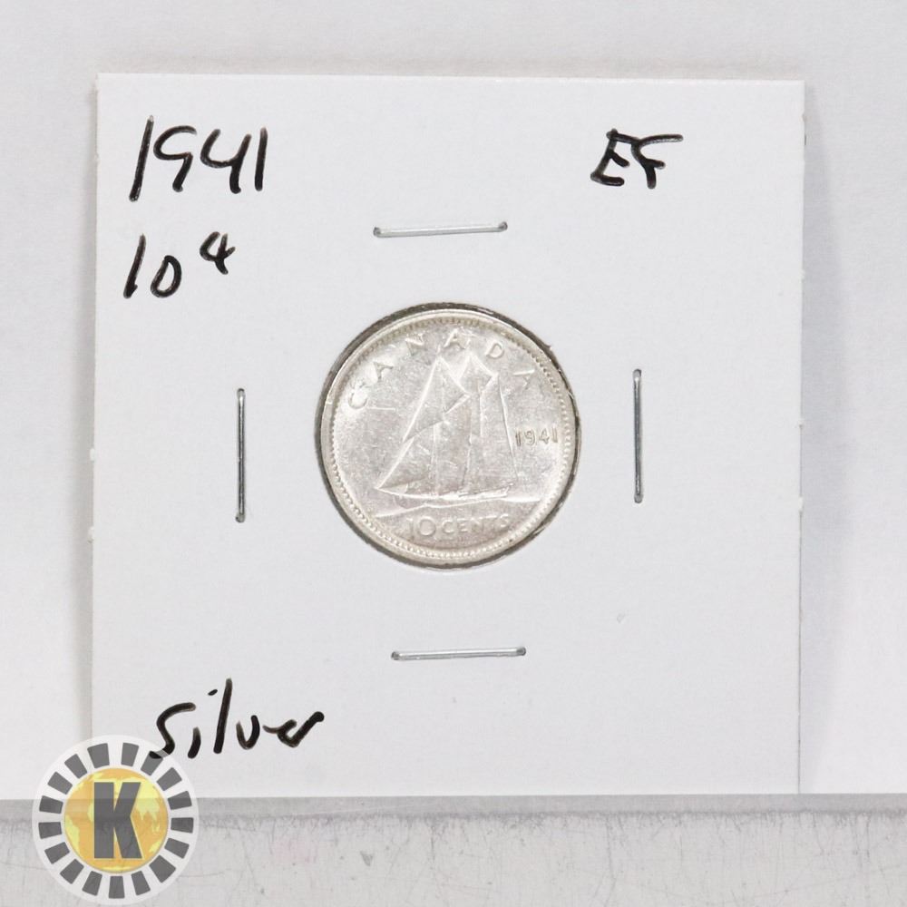 1941 SILVER CANADA 10 CENTS COIN, EXTRA FINE