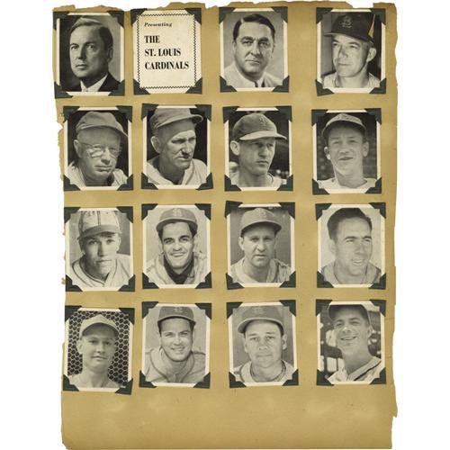 <B>1941 St. Louis Browns (W753) and St. Louis Cardinals (W754) Team Issues.</B></I> Measuring approximately 2.25x2.75", these unnumbered sets of cards feature the American League and National League ballclubs representing the Gateway City. The St. Louis Browns issue is short one card (29/30); while the St. Louis Cardinals issue is complete (30/30) and includes notables Branch Rickey, Enos Slaughter and Johnny Mize. Most of the cards grade EX/MT or better, with just a few displaying minor toning.<BR><BR><b>Shipping:</b> Flat Material, Small (<a target="_blank" href="http://www.heritageauctions.com/common/shipping.php">view shipping information</a>)