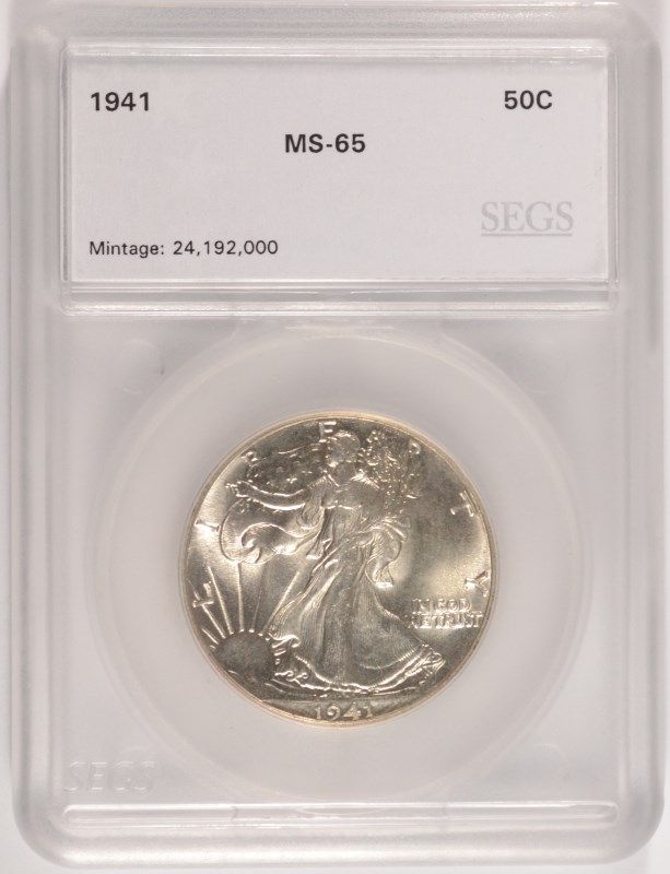 1941 WALKING LIBERTY HALF DOLLAR, SEGS MS-65 GEM!