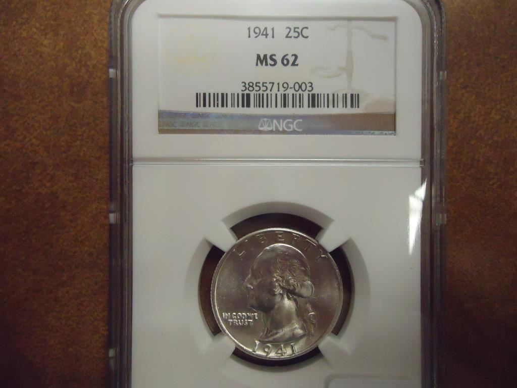 1941 WASHINGTON SILVER QUARTER NGC MS62
