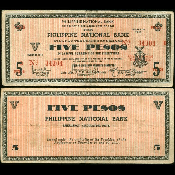 1941 WW2 Guerrilla Rebel Philippines 5P Note Negros (CUR-007264)