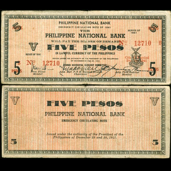 1941 WW2 Guerrilla Rebel Philippines 5P Note Negros (CUR-007265)