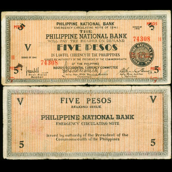 1941 WW2 Guerrilla Rebel Philippines 5P Note Negros (CUR-007267)