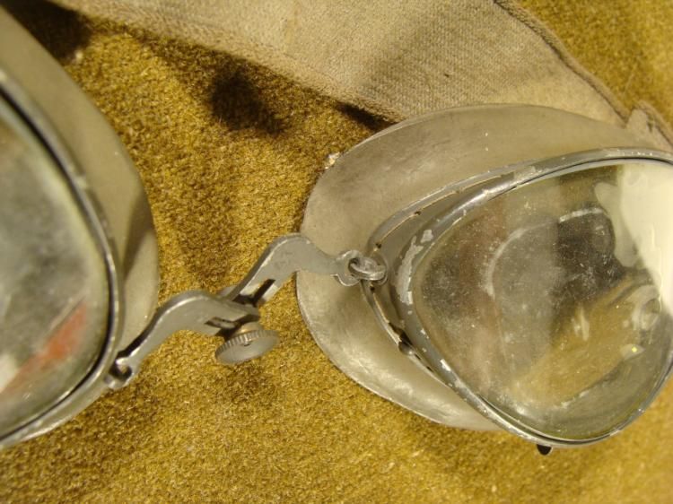 THIS IS AN ORIGINAL, 1941 WWII NAZI ORIG LEITZ FLIGHT GOGGLES (WINDSCHUTZBRILLE). THE GOGGLES HAVE A GRAY METAL FRAMES, RUBBER EYE SOCKETS, AND A ELASTIC HEADBAND. IT HAS THE MAKER'S MARK, "GS-41" 1941. *