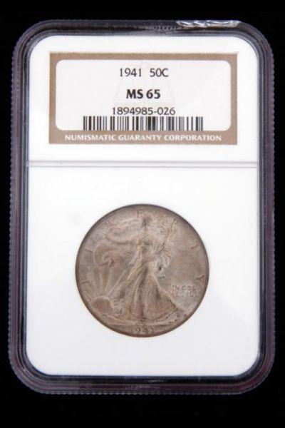 1941 Walking Liberty Coin Slabbed 1945 50C MS-65 by NGCSlabbed 1945 50C MS-65 by NGC