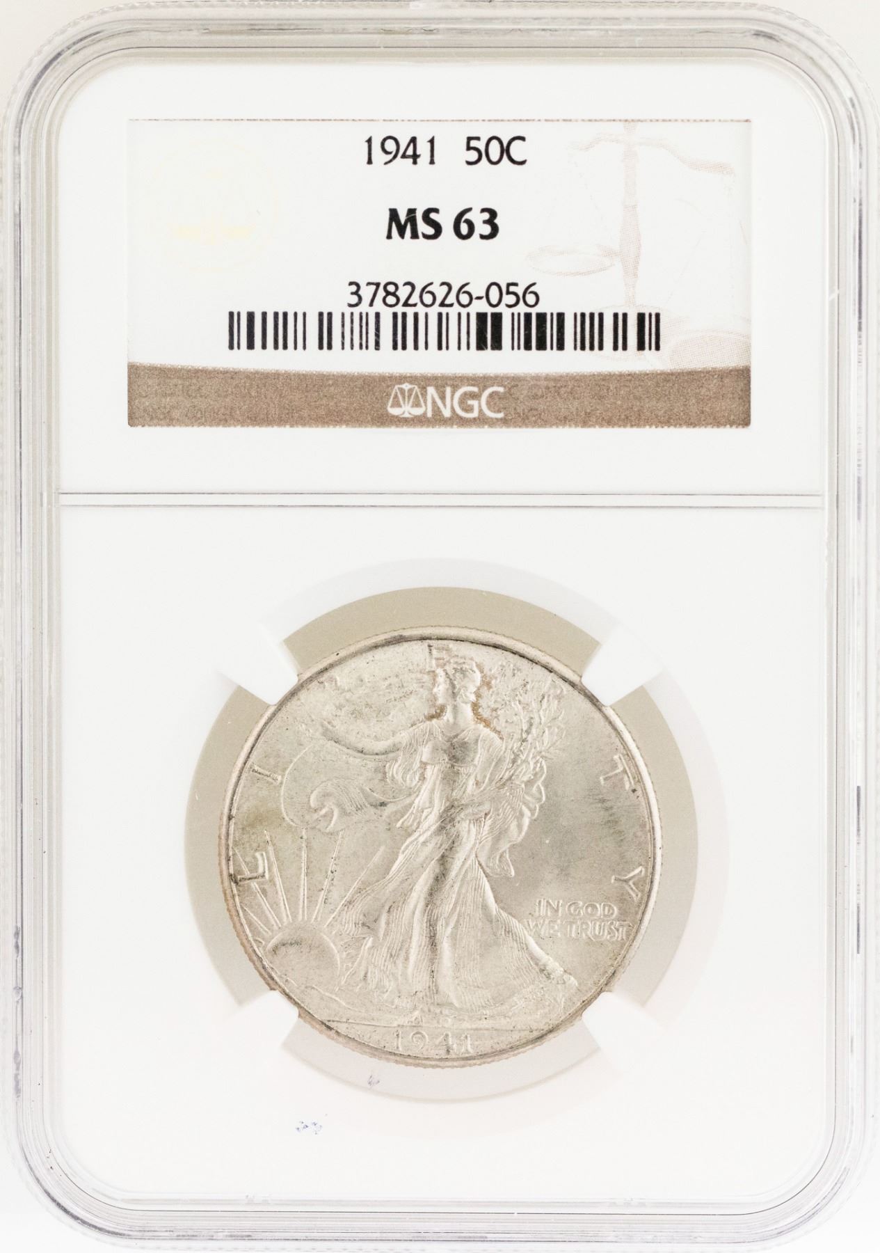 One 1941 Walking Liberty Half Dollar Coin NGC MS63.