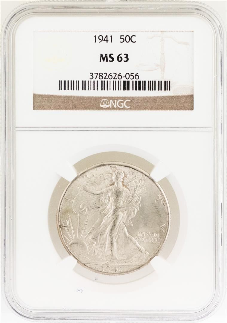 One 1941 Walking Liberty Half Dollar Coin NGC MS63. NGC Certified.
