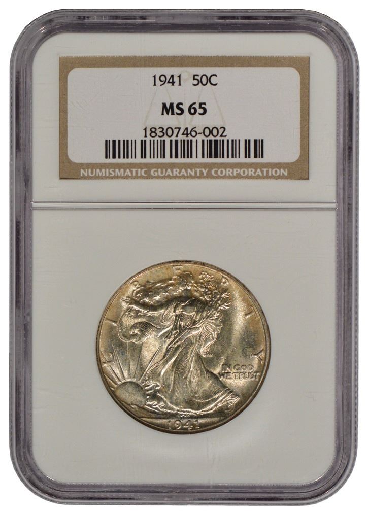One 1941 Walking Liberty Half Dollar Coin NGC MS65.