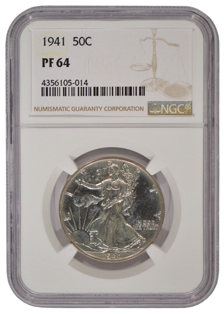 One 1941 Walking Liberty Half Dollar Coin NGC PF64.