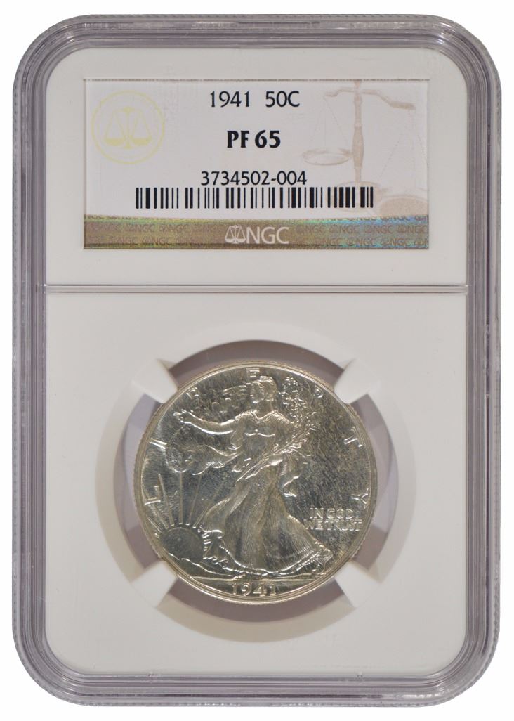 One 1941 Walking Liberty Half Dollar Coin NGC PF65.
