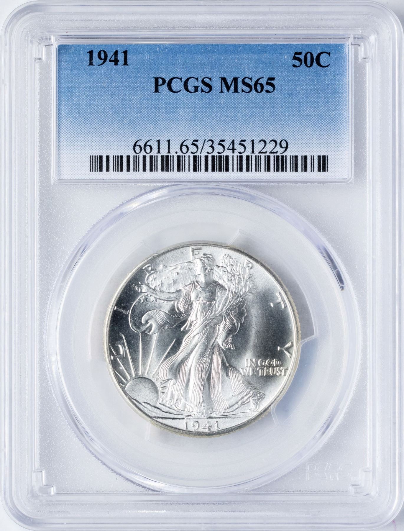 One 1941 Walking Liberty Half Dollar Coin PCGS MS65.