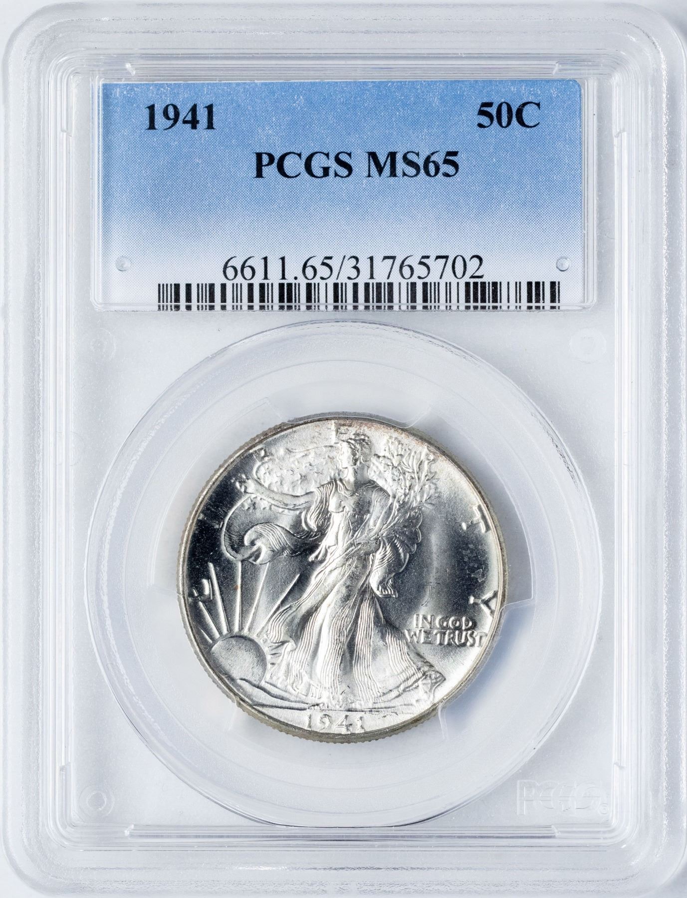 One 1941 Walking Liberty Half Dollar Coin PCGS MS65.