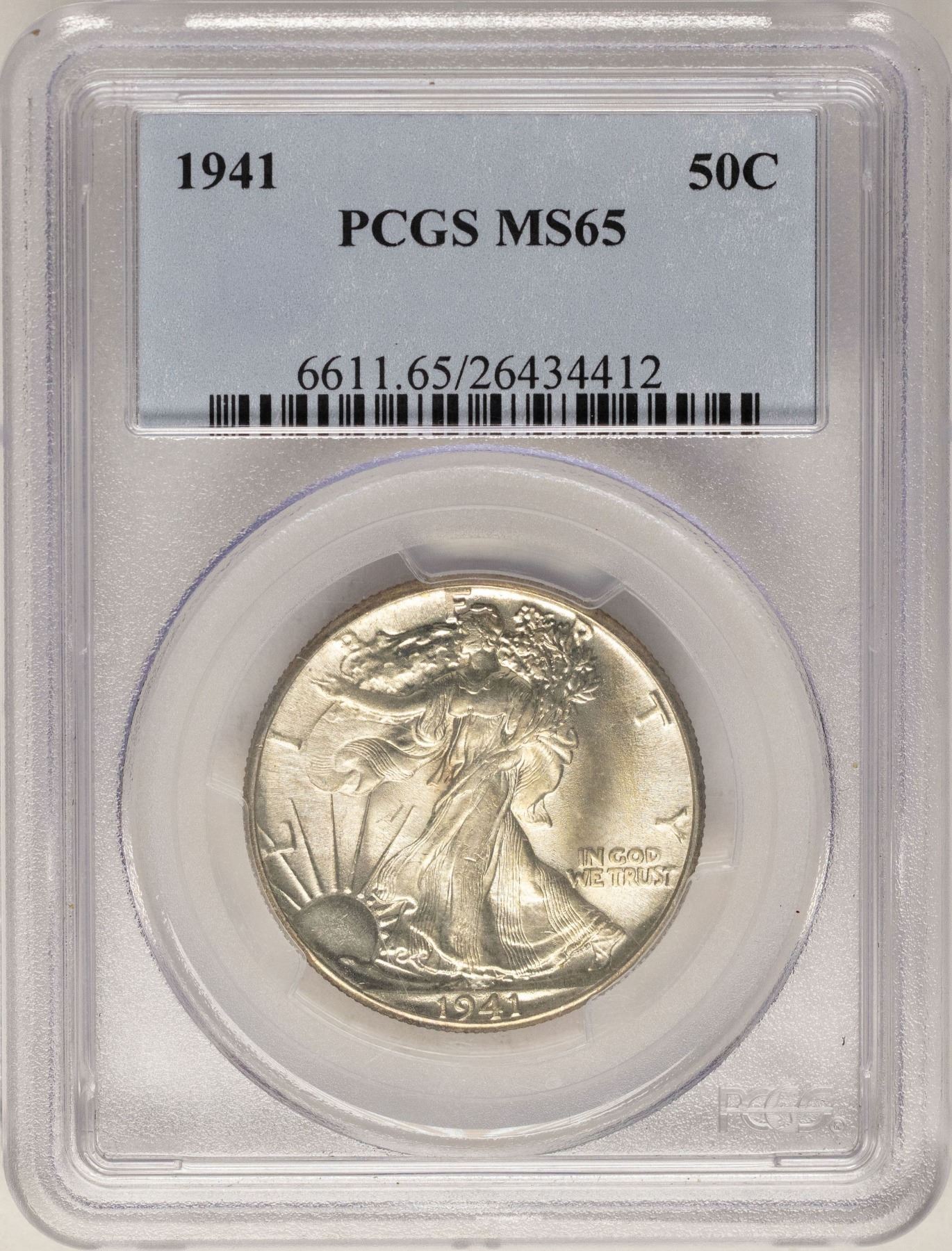 One 1941 Walking Liberty Half Dollar Coin PCGS MS65.