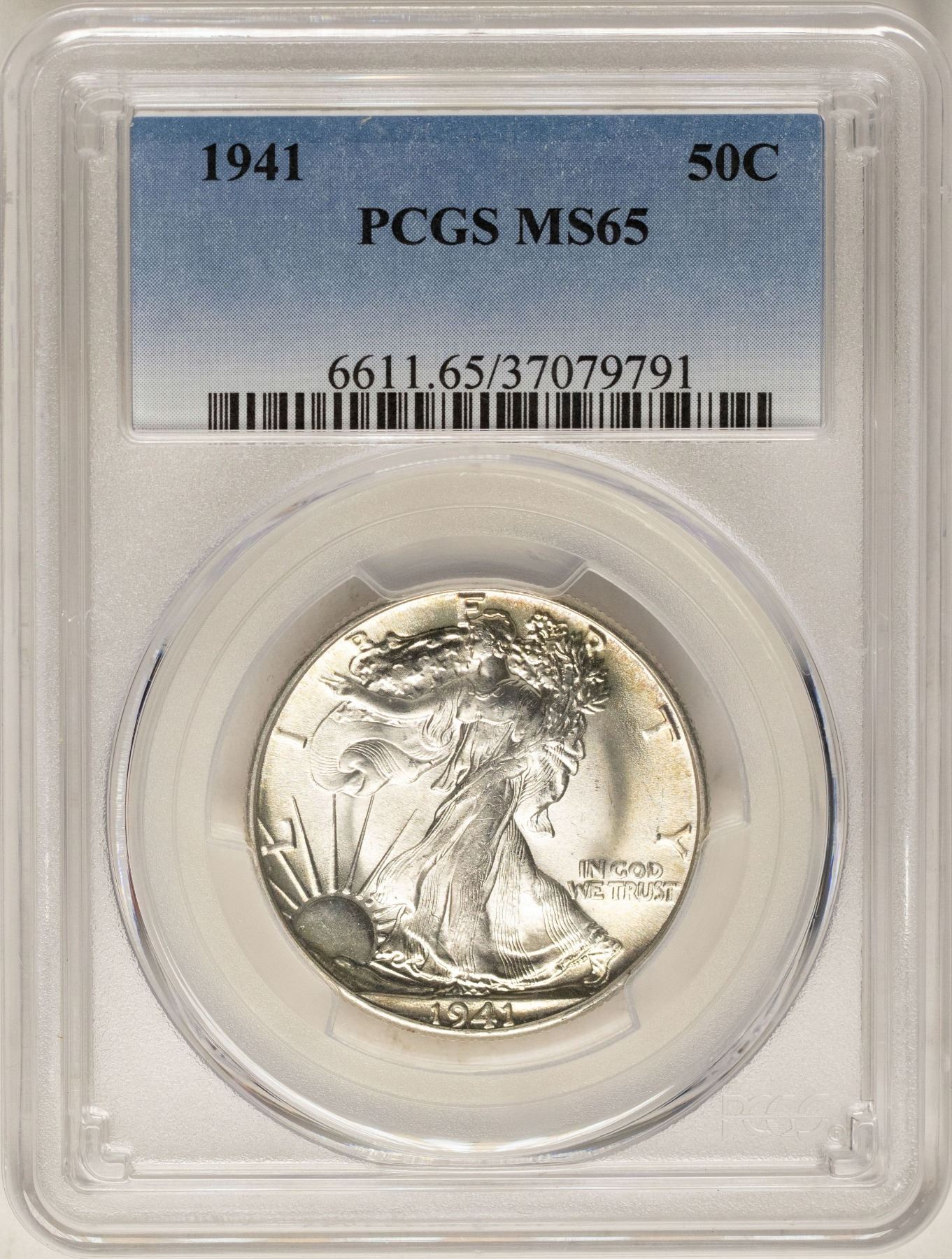 One 1941 Walking Liberty Half Dollar Coin PCGS MS65.