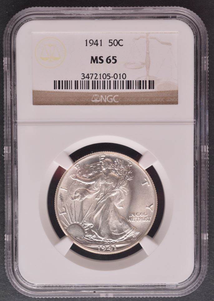 United States, Half Dollar, 1941, graded by NGC Mintstate-65. Lovely Gem with lots of frost.
