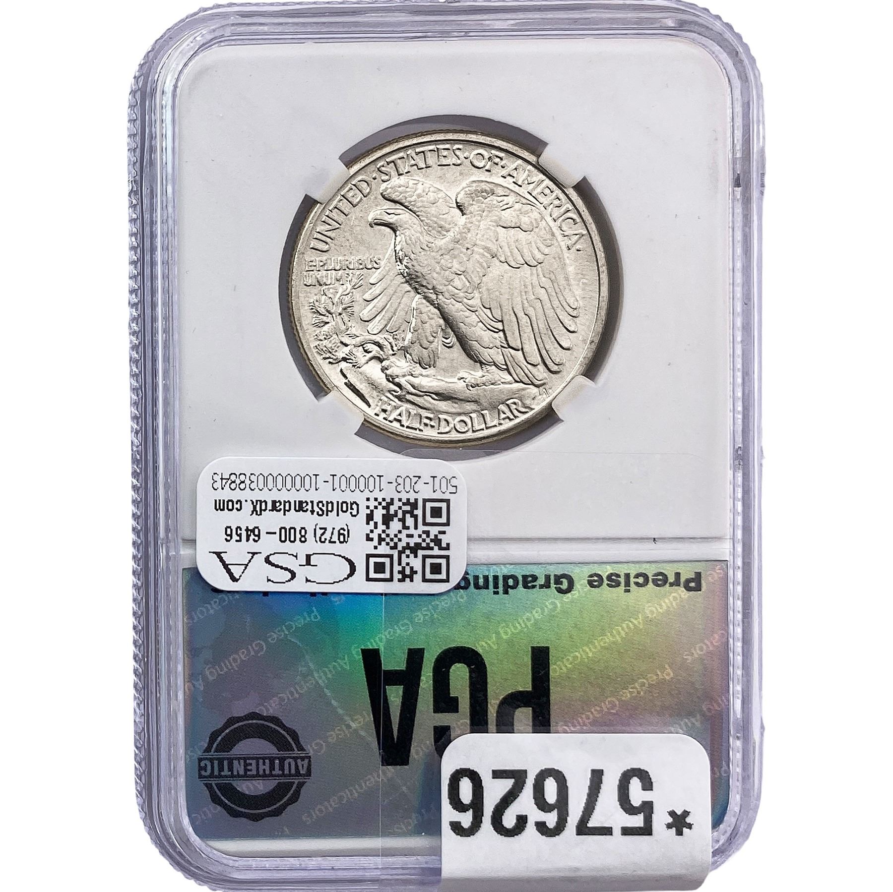 e. Coins sold referencing a third-party grading service are sold “AS IS” without any express or implied warranty, except for a guarantee by GSA that they are genuine. Removal or alteration of the holder, voids all of Bidder’s claims concerning that Product. Certain warranties may be available from the grading services and Bidders are referred to them for further details: Numismatic Guaranty Corporation (NGC), PO Box 4776, Sarasota, FL 34230, www.ngccoin.com/services/writtenguarantee.asp; Professional Coin Grading Services (PCGS), PO Box 9458, Newport Beach, CA 92658, www.pcgs.com/guarantee.html; ANACS, 6555 S. Kenton St., Ste. 303, Englewood, CO 80111; and Independent Coin Grading Co. (ICG), 7901 East Bellview, Ave., Suite 50, Englewood, CO 80111.