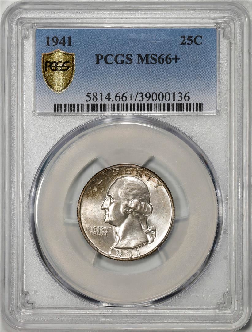One 1941 Washington Quarter Coin PCGS MS66+. PCGS Graded.
