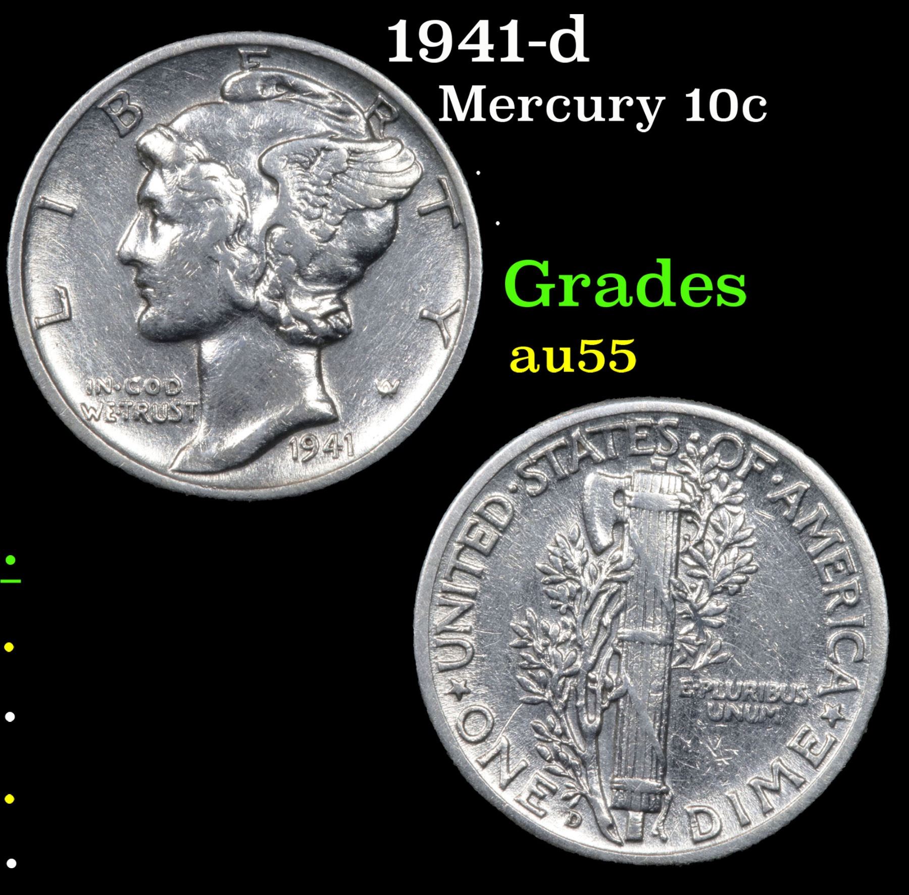 1941-d . . Mercury Dime 10c Grades Choice AU.