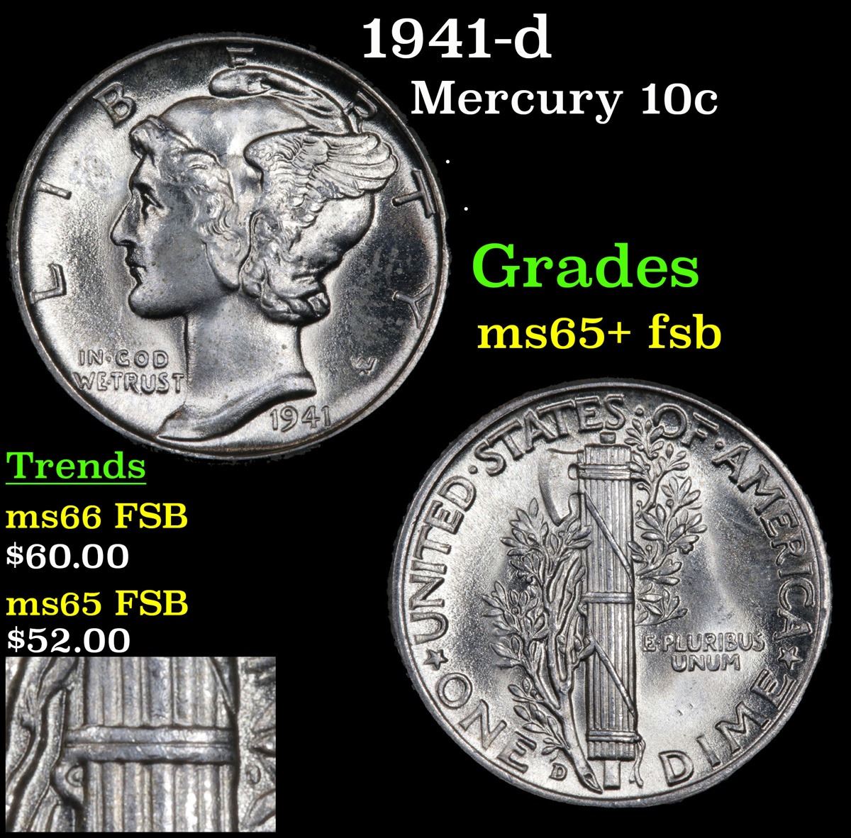 1941-d Mercury Dime 10c Grades GEM+ FSB.
