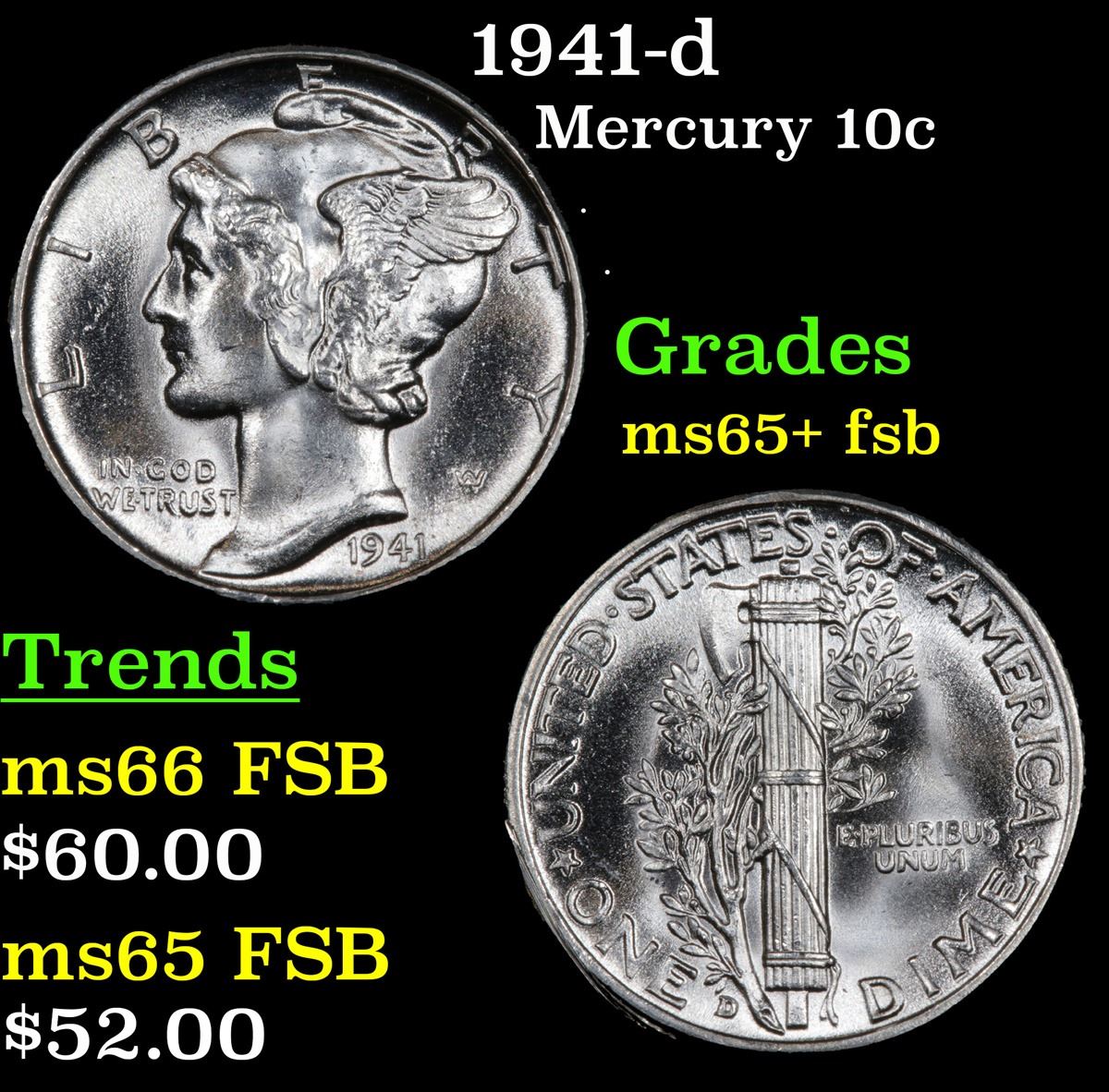 1941-d Mercury Dime 10c Grades GEM+ FSB.