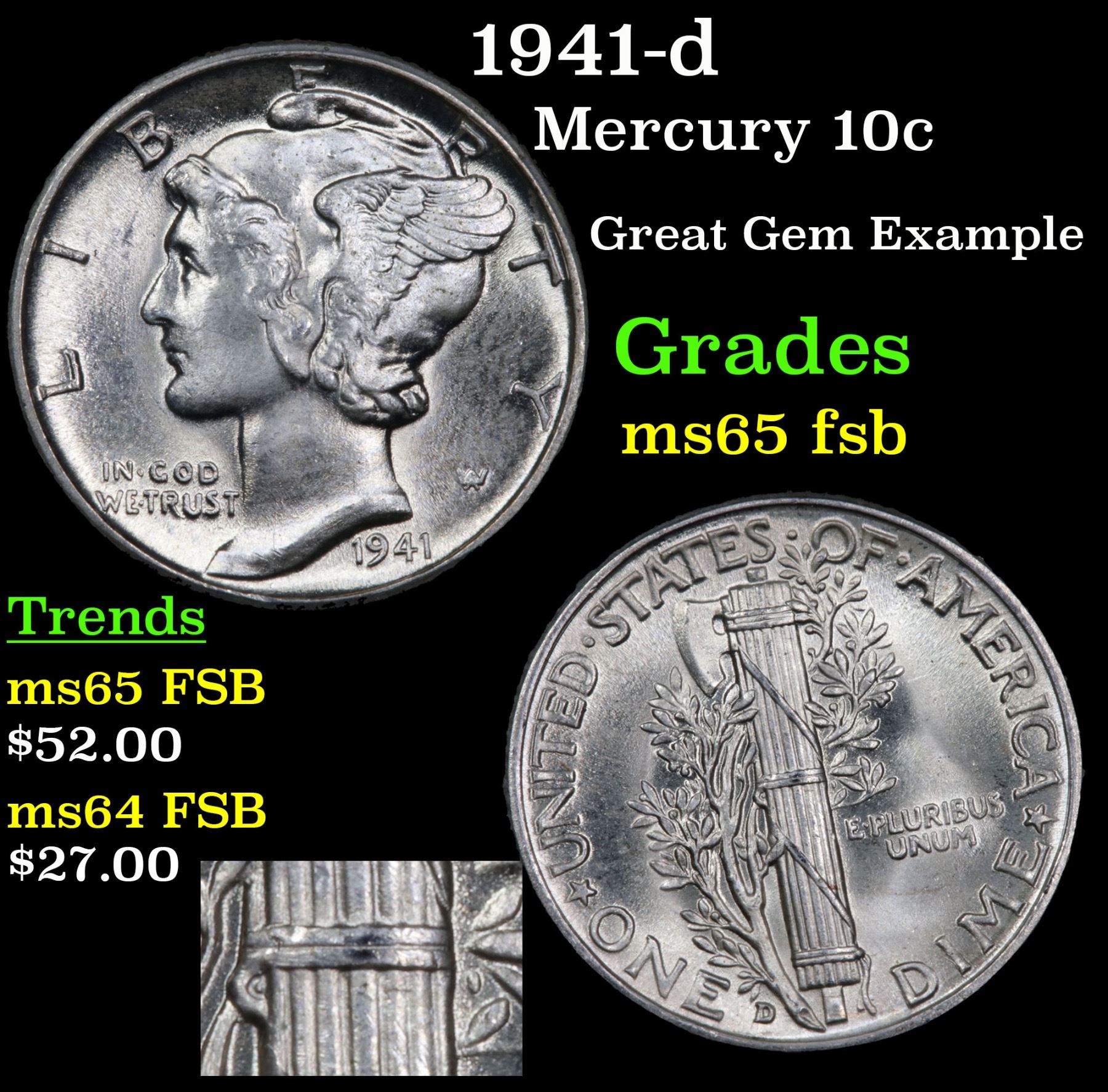 1941-d Mercury Dime 10c Grades GEM FSB.