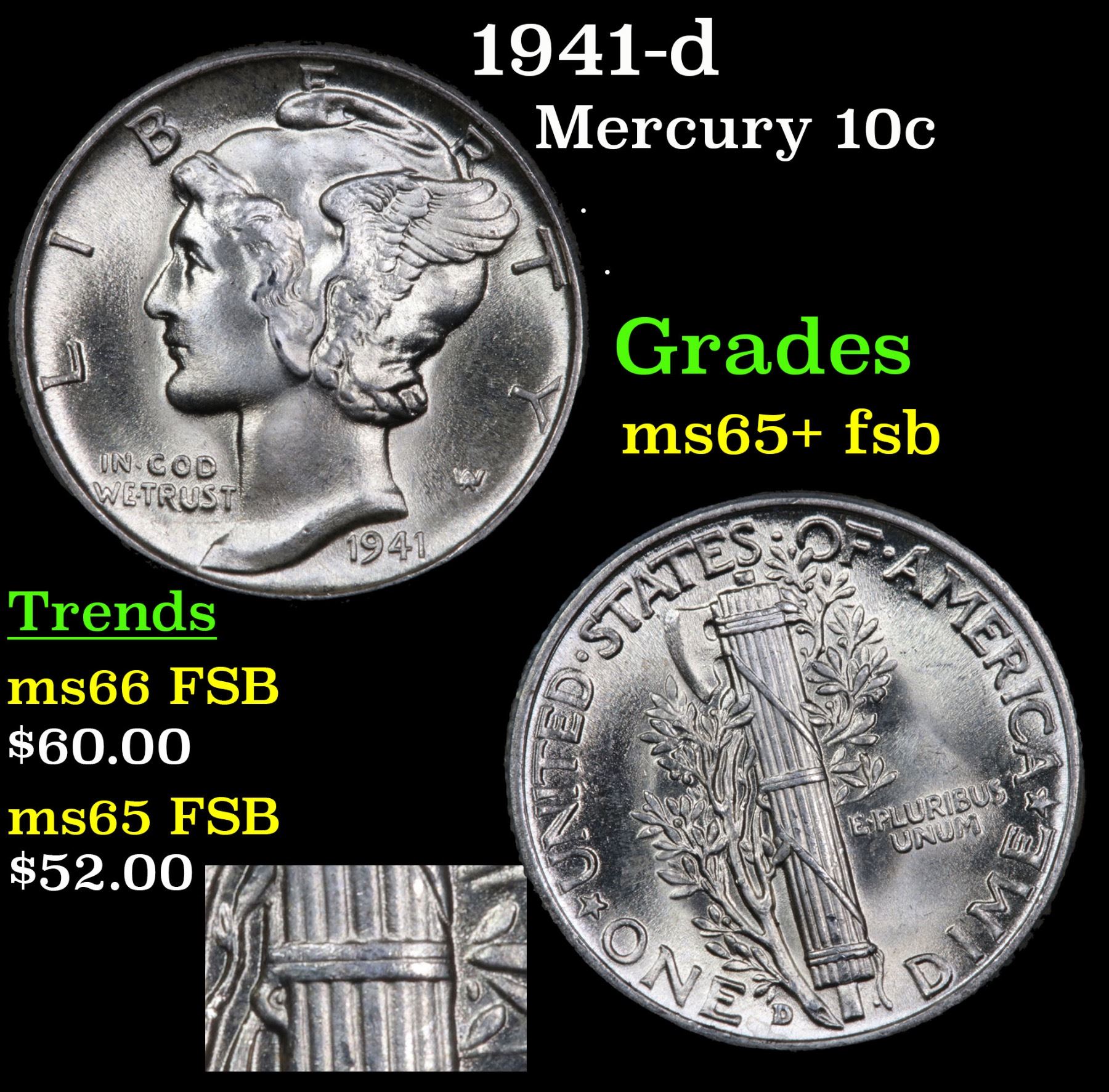1941-d Mercury Dime 10c Grades GEM+ FSB.