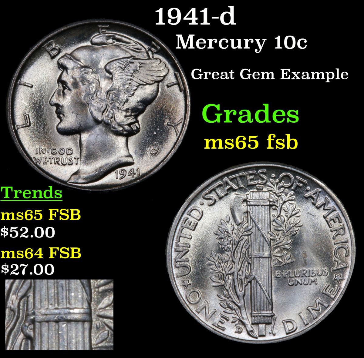 1941-d Mercury Dime 10c Grades GEM FSB.