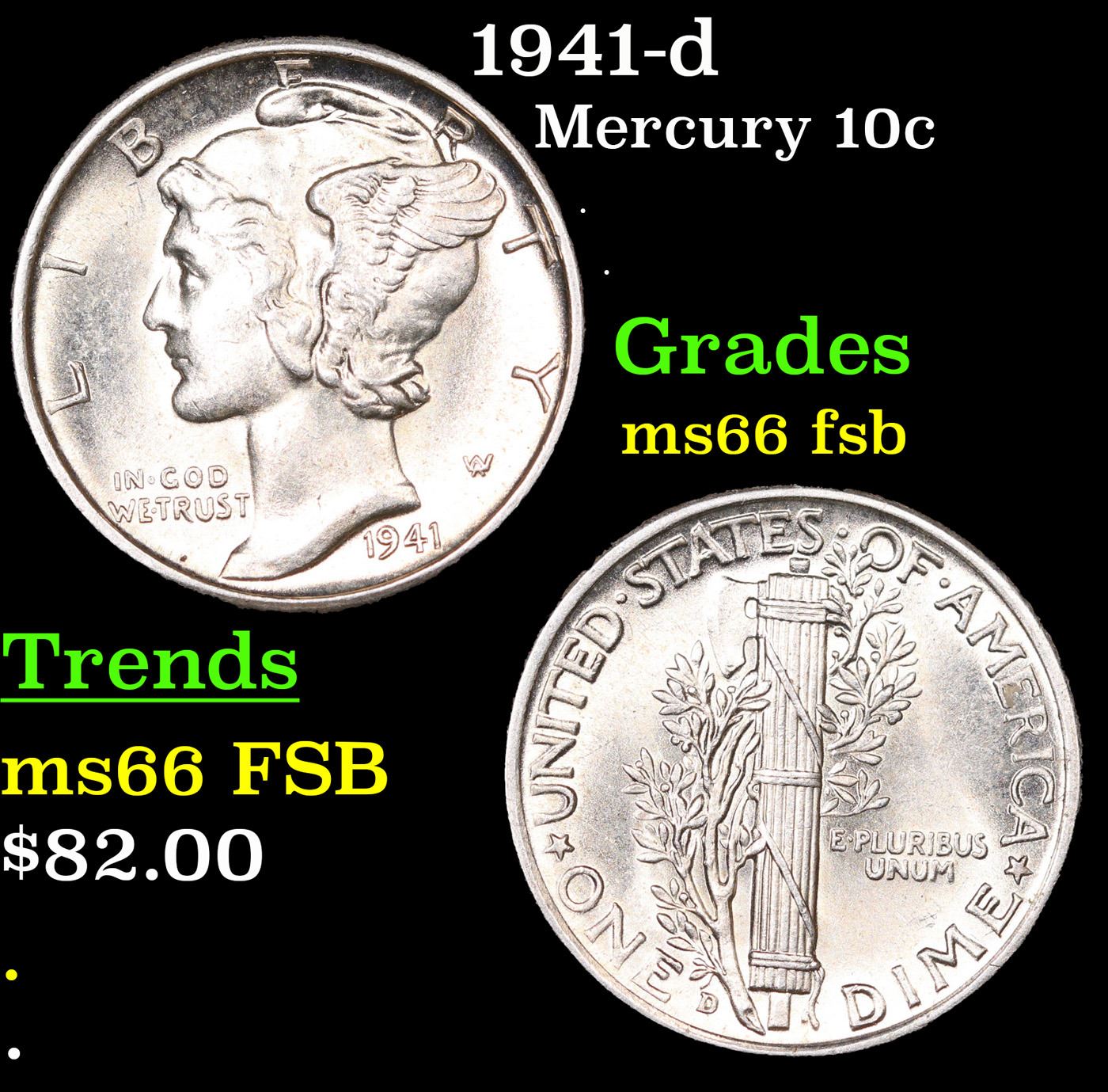 1941-d Mercury Dime 10c Grades GEM+ FSB.