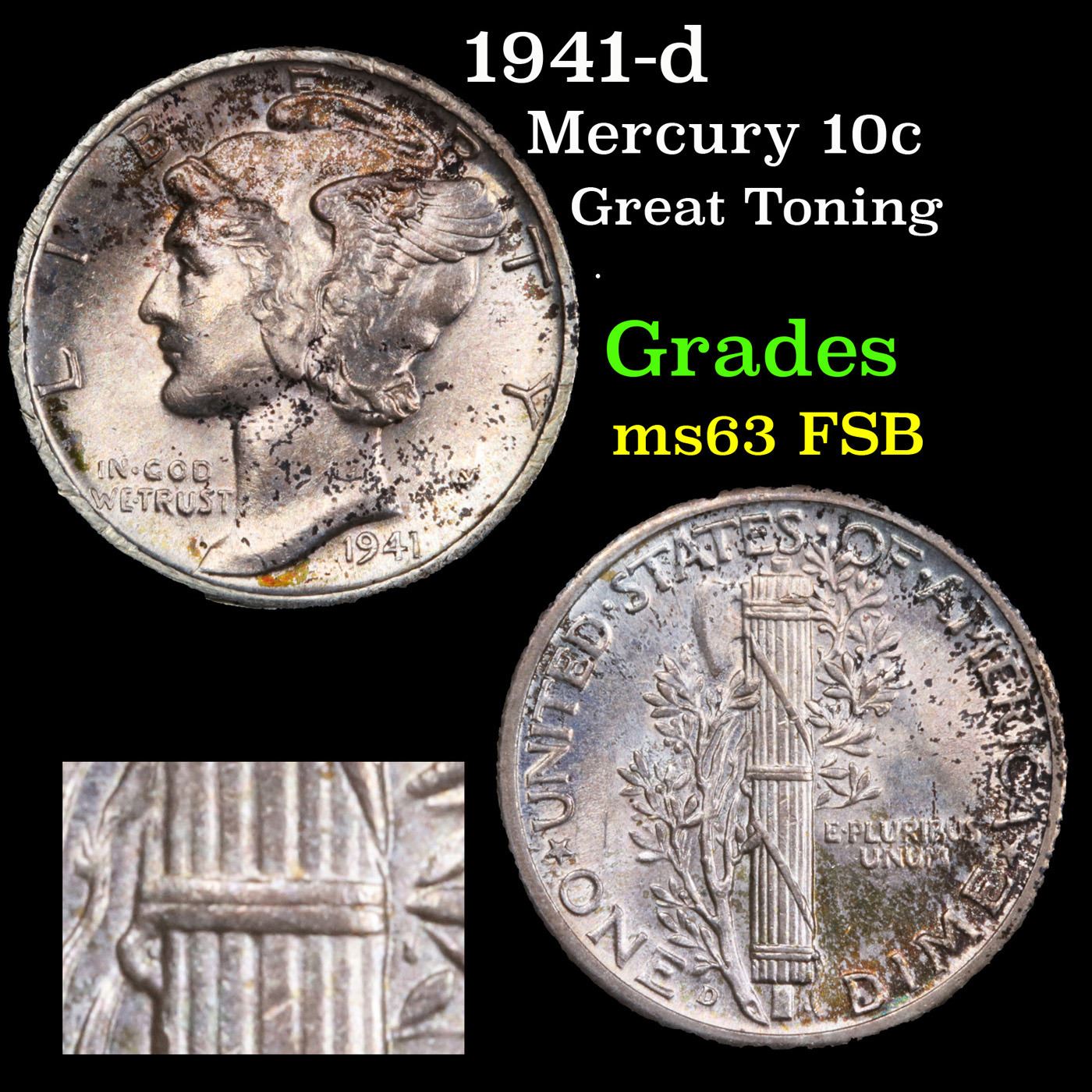 1941-d Mercury Dime 10c Grades Select Unc FSB.