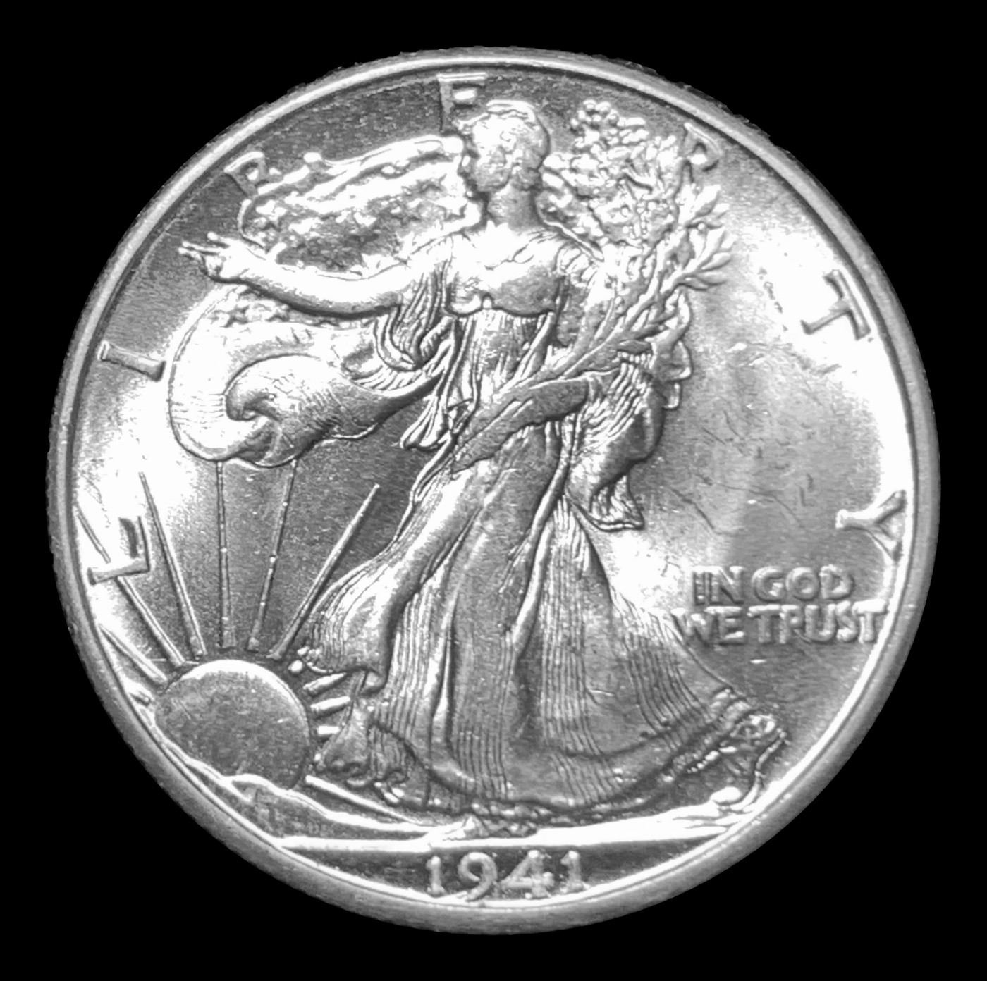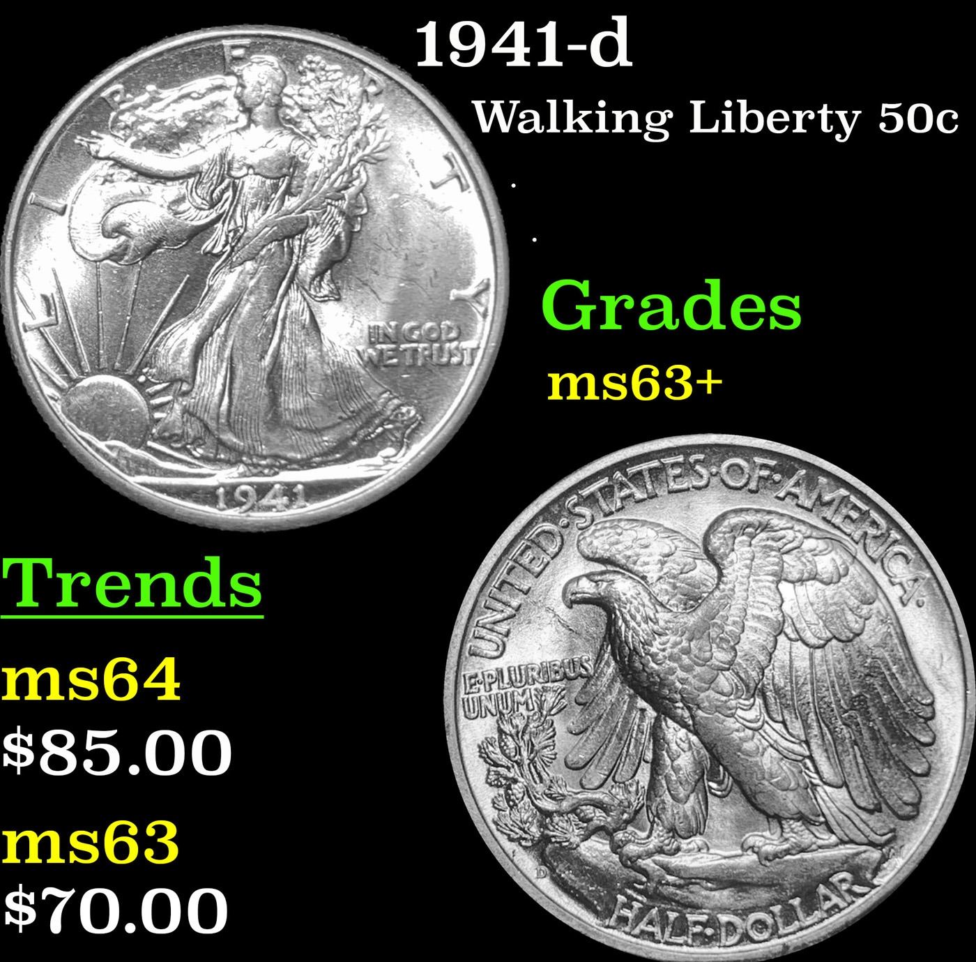 1941-d Walking Liberty Half Dollar 50c Grades Select+ Unc.