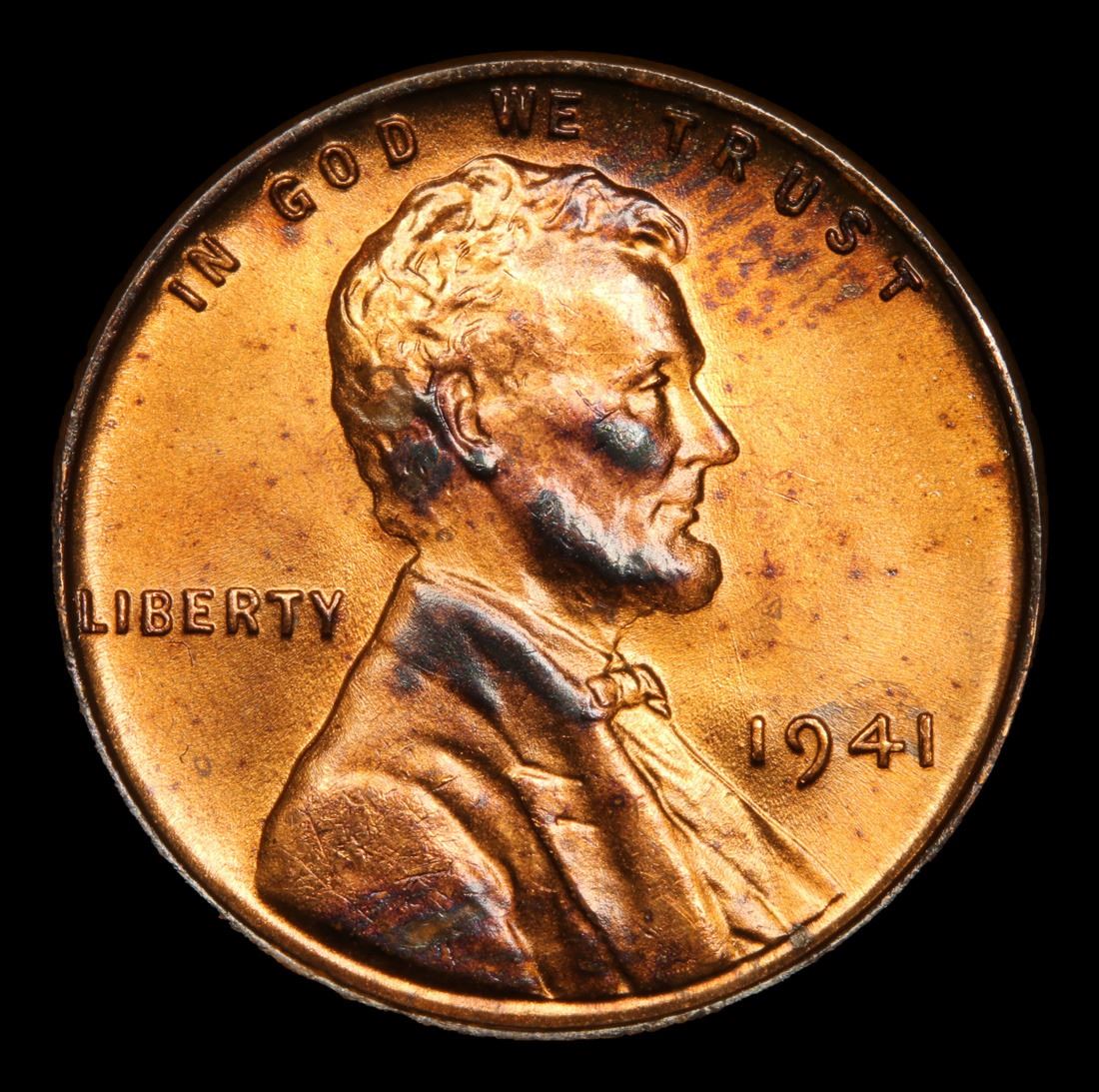 1941-p . Very Near Gem Lincoln Cent 1c Grades Choice+ Unc RB.