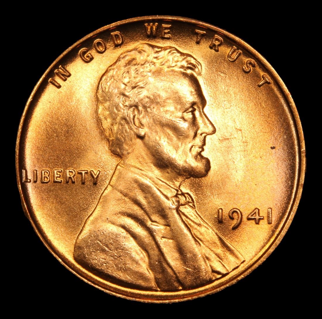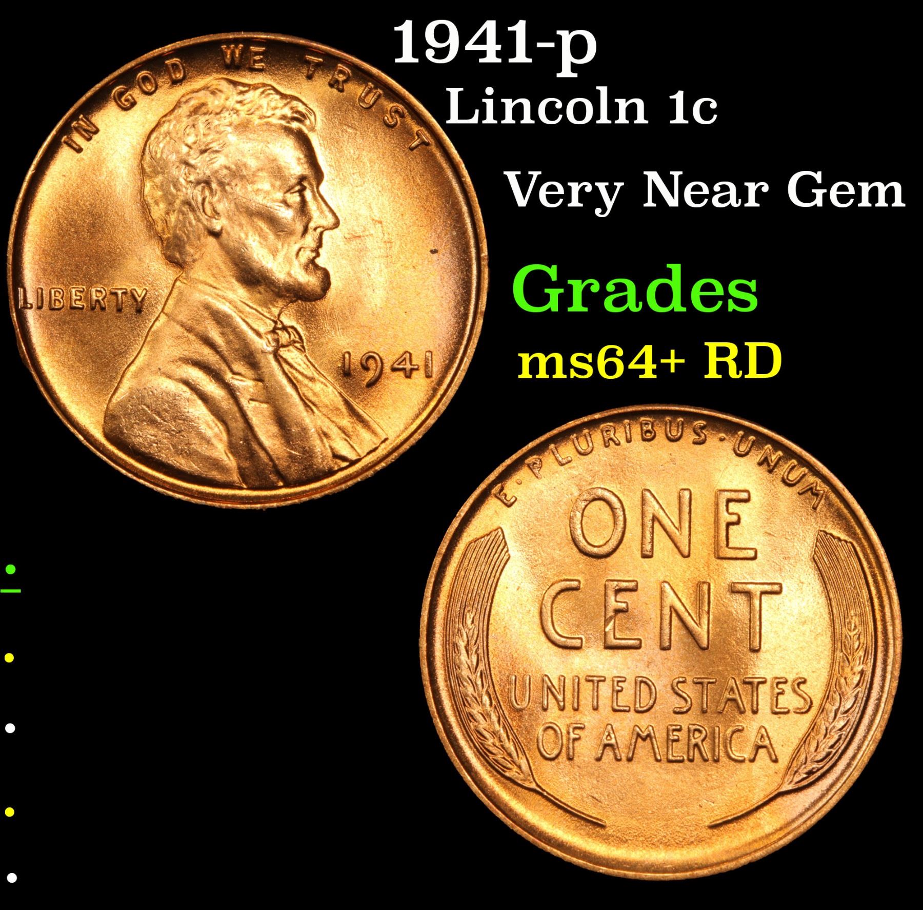 1941-p Lincoln Cent 1c Grades Choice+ Unc RD. Very Near Gem