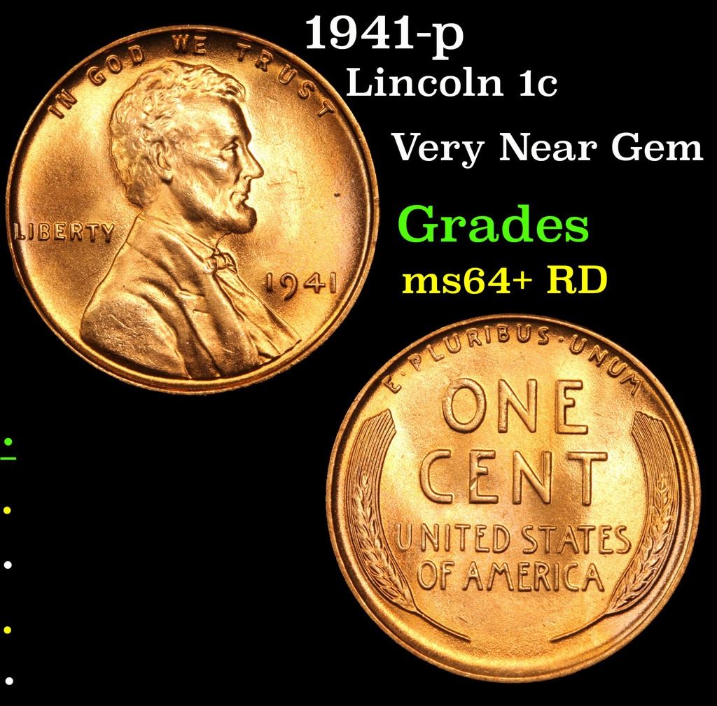 1941-p . Very Near Gem Lincoln Cent 1c Grades Choice+ Unc RD.