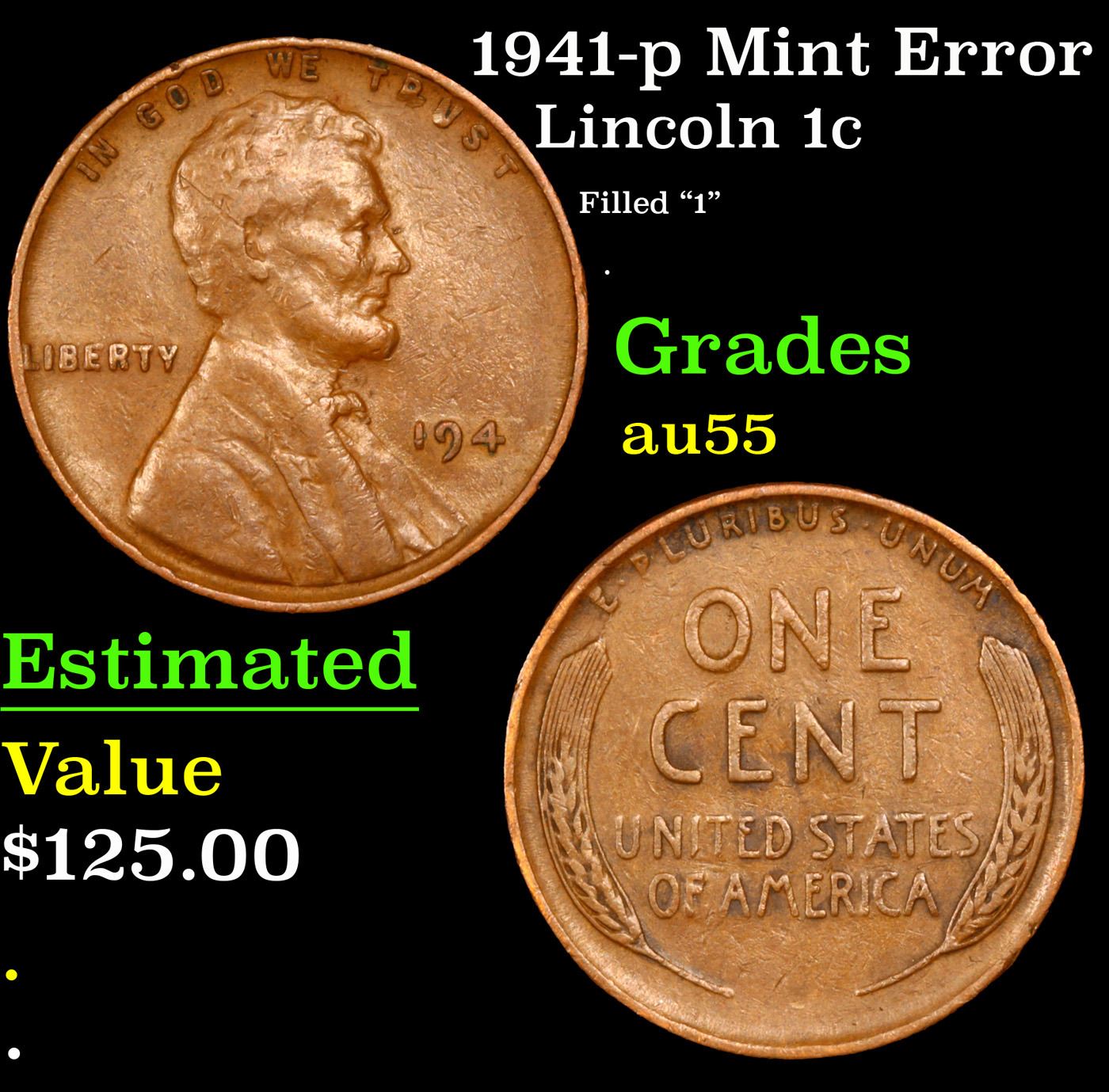 1941-p Mint Error Lincoln Cent 1c Grades Choice AU.