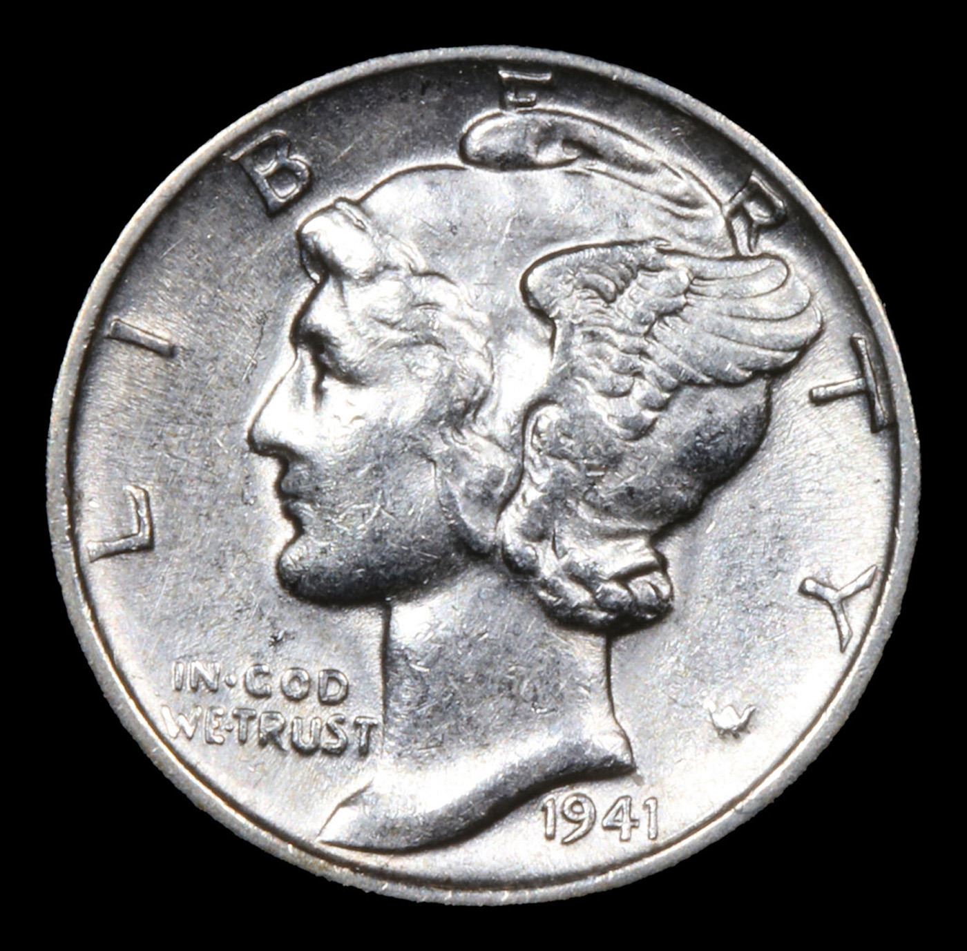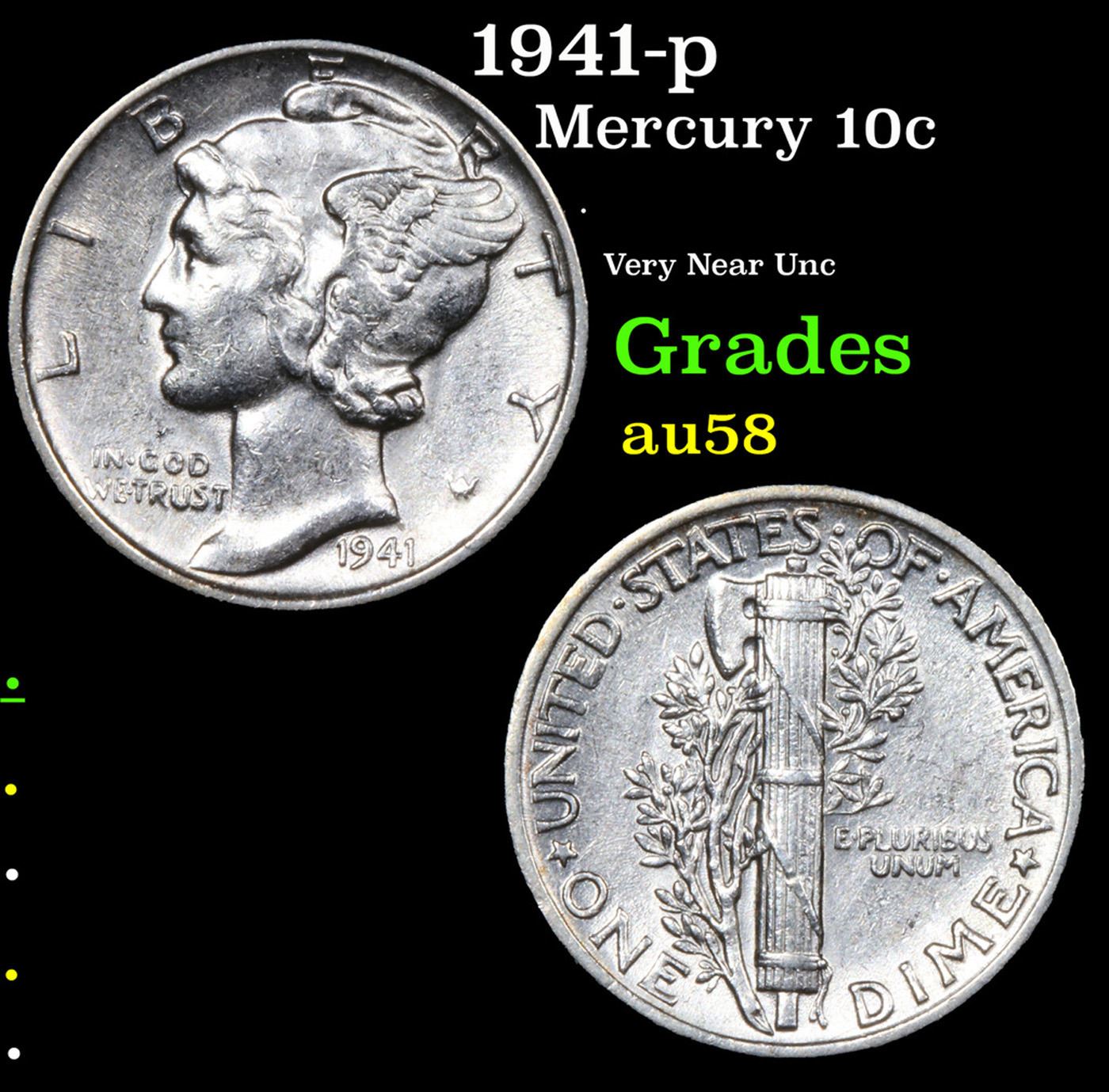 1941-p Mercury Dime 10c Grades Choice AU/BU Slider.