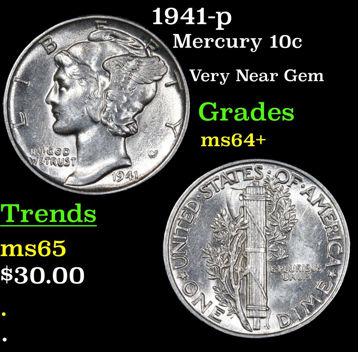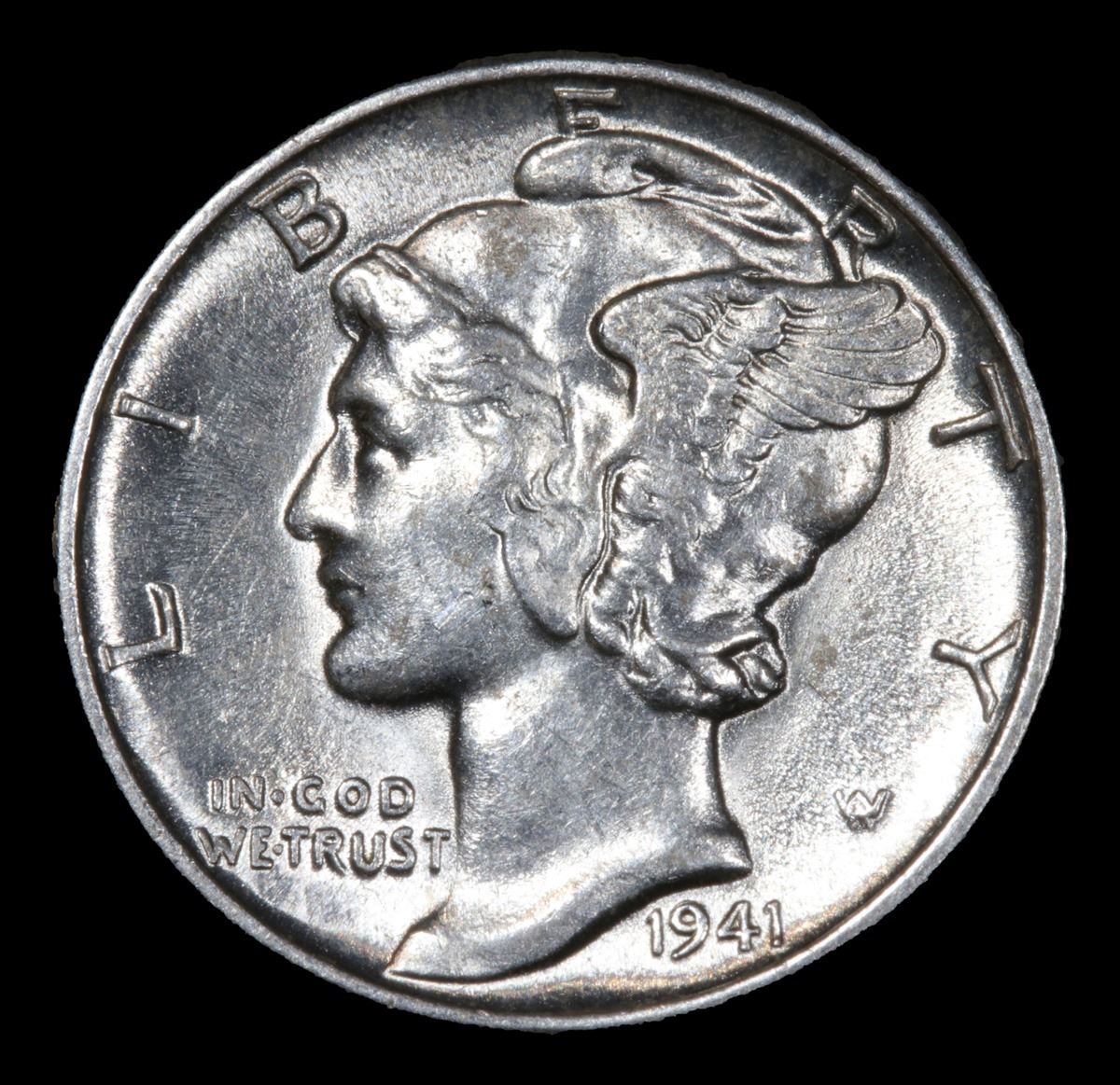 1941-p . Very Near Gem Mercury Dime 10c Grades Choice+ Unc.