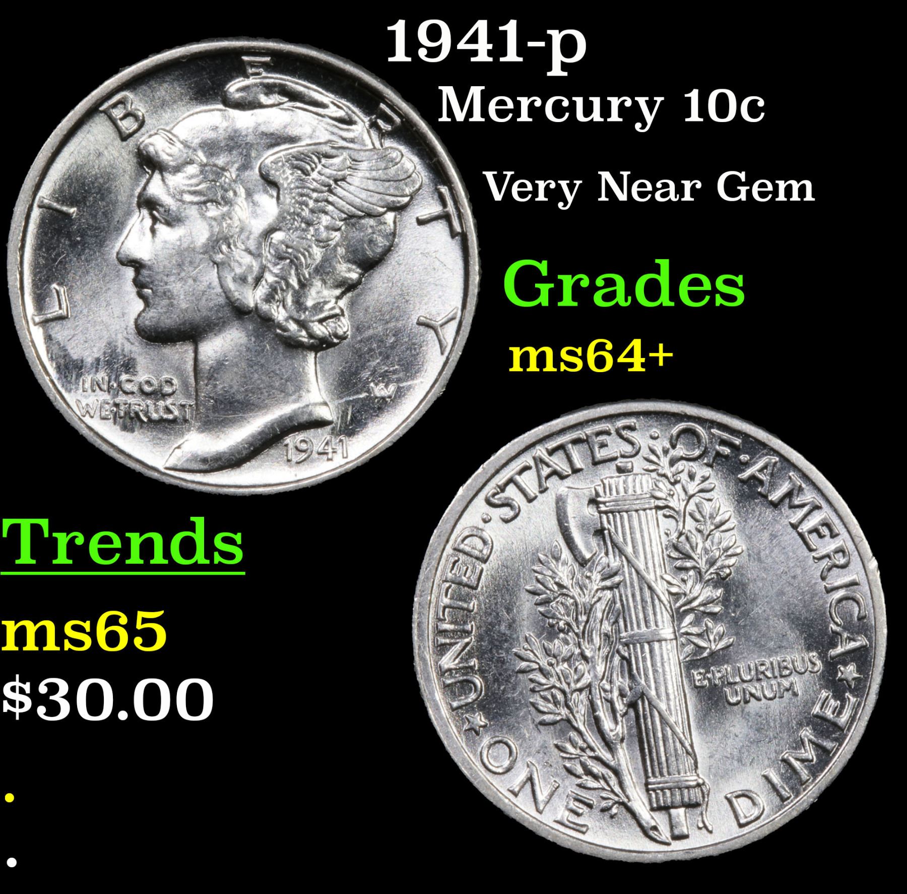 1941-p Mercury Dime 10c Grades Choice+ Unc.