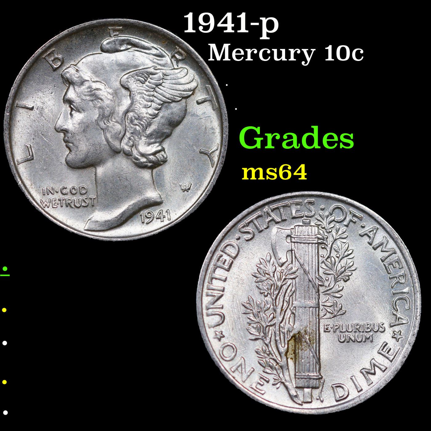 1941-p Mercury Dime 10c Grades Choice Unc.