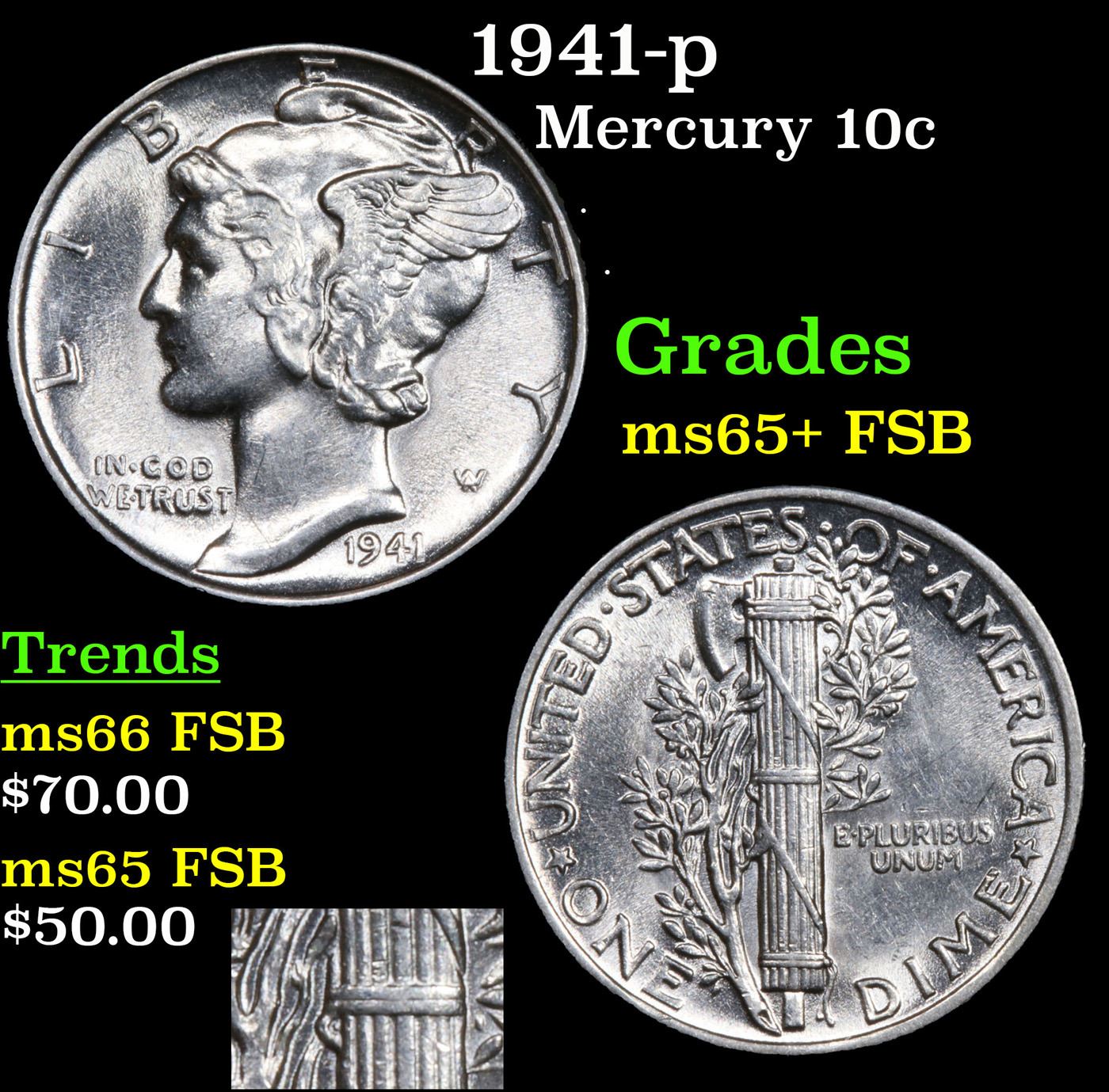1941-p Mercury Dime 10c Grades GEM+ FSB.