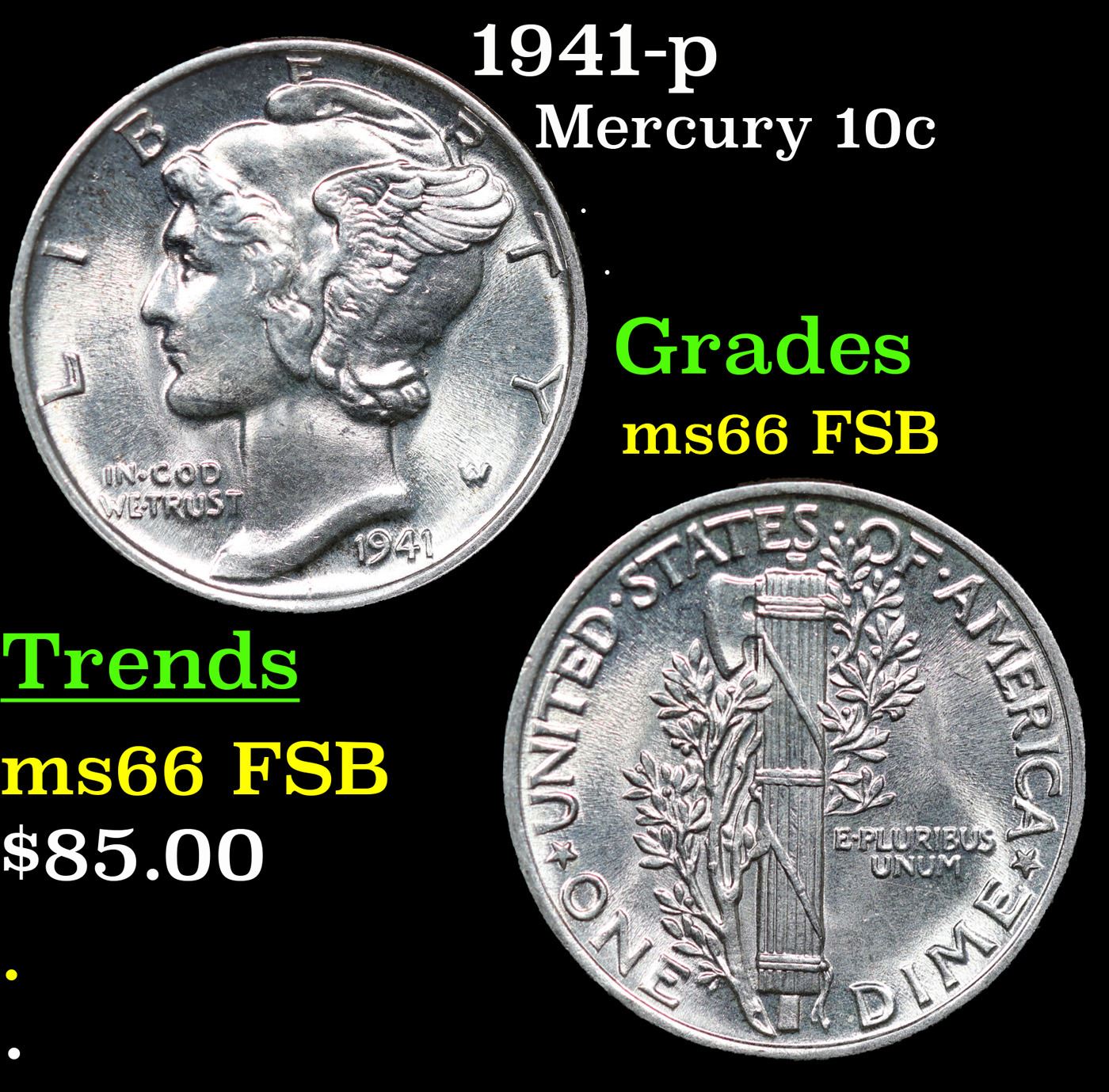 1941-p Mercury Dime 10c Grades GEM+ FSB.