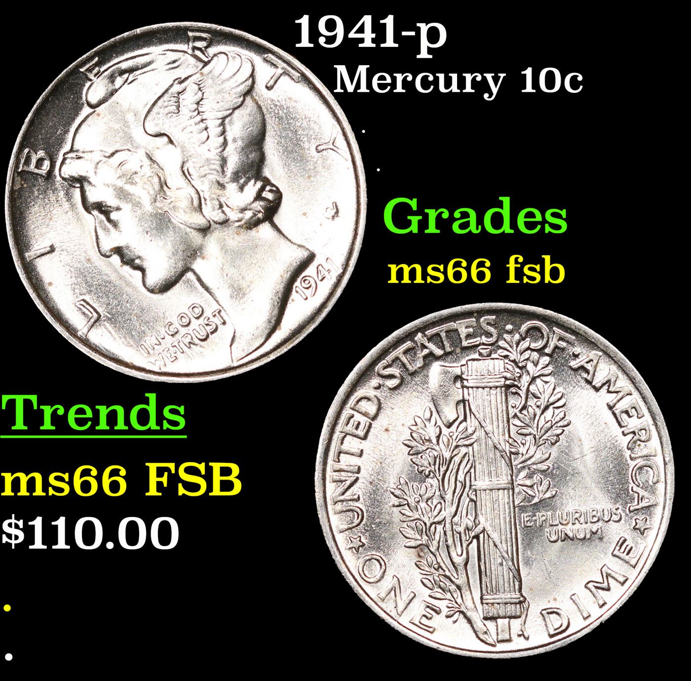 1941-p Mercury Dime 10c Grades GEM+ FSB.