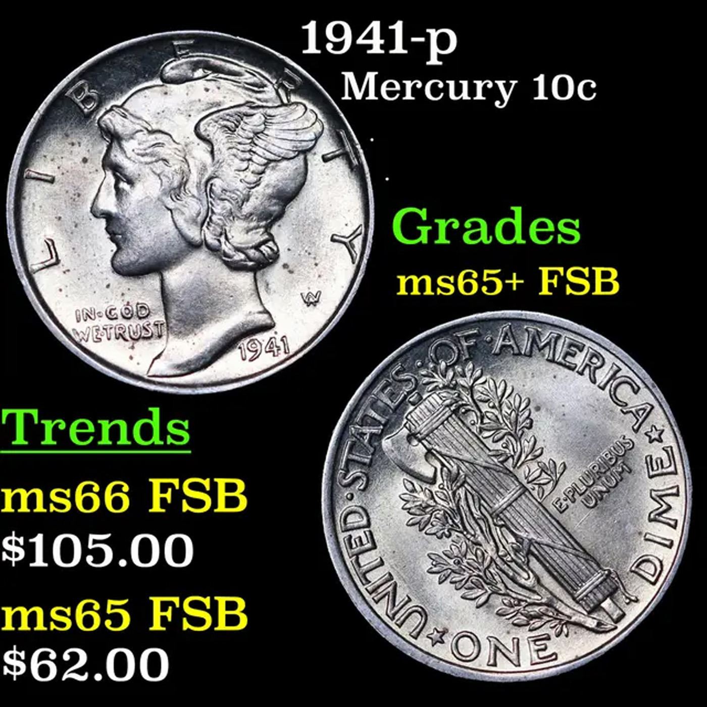 1941-p Mercury Dime 10c Grades GEM+ FSB.