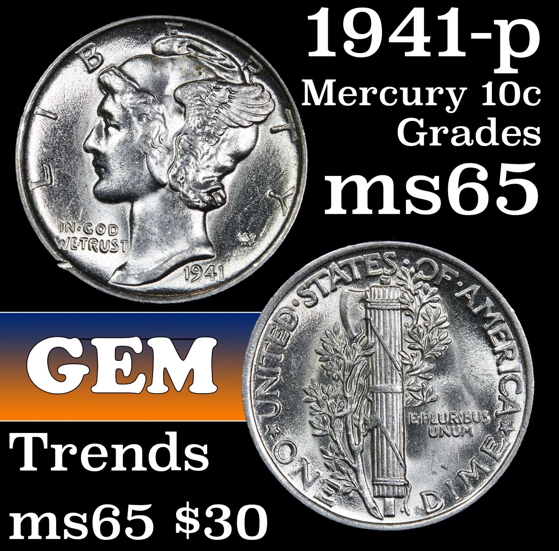 1941-p Mercury Dime 10c Grades GEM Unc.