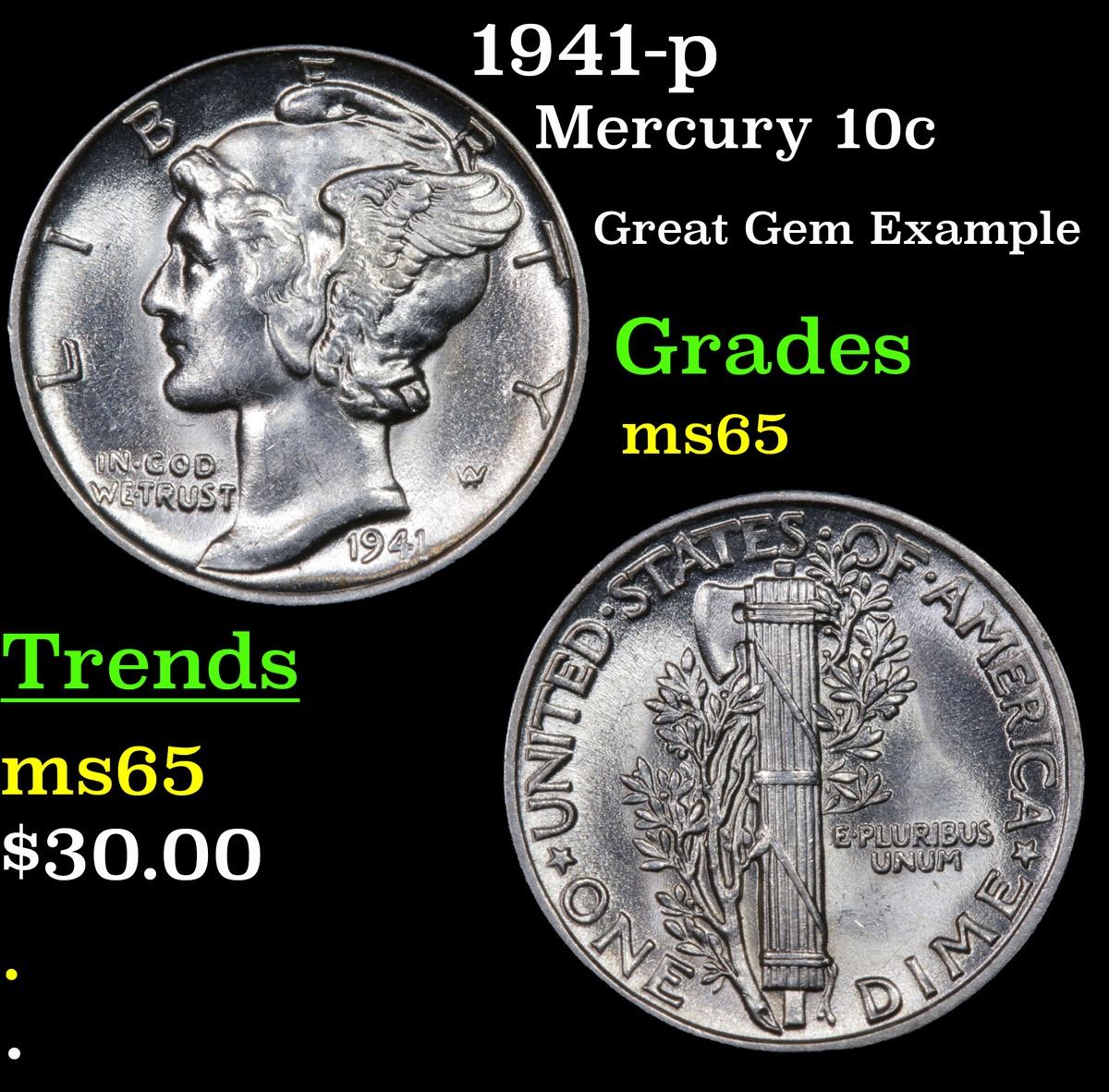 1941-p . Great Gem Example Mercury Dime 10c Grades GEM Unc.