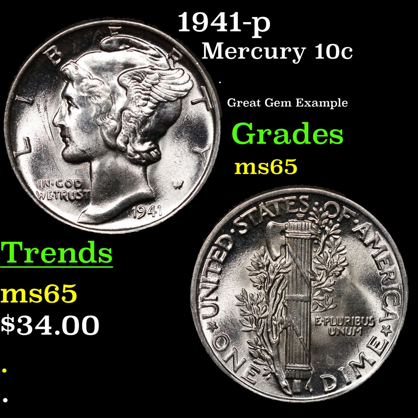 1941-p Mercury Dime 10c Grades GEM Unc.