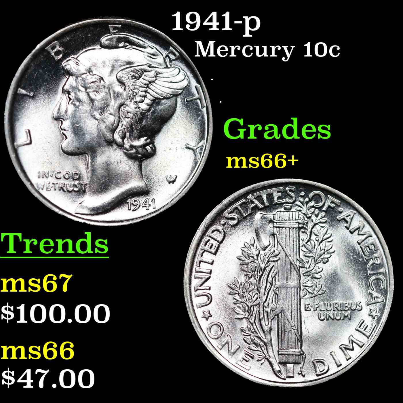 1941-p Mercury Dime 10c Grades GEM++ Unc.
