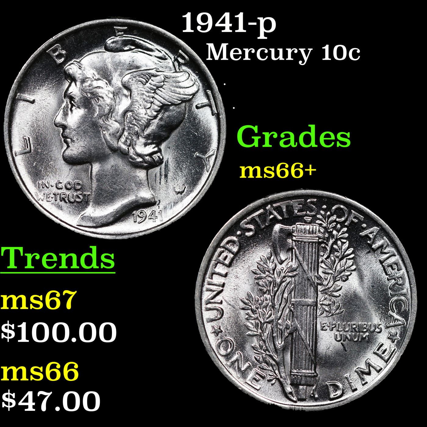1941-p Mercury Dime 10c Grades GEM++ Unc.