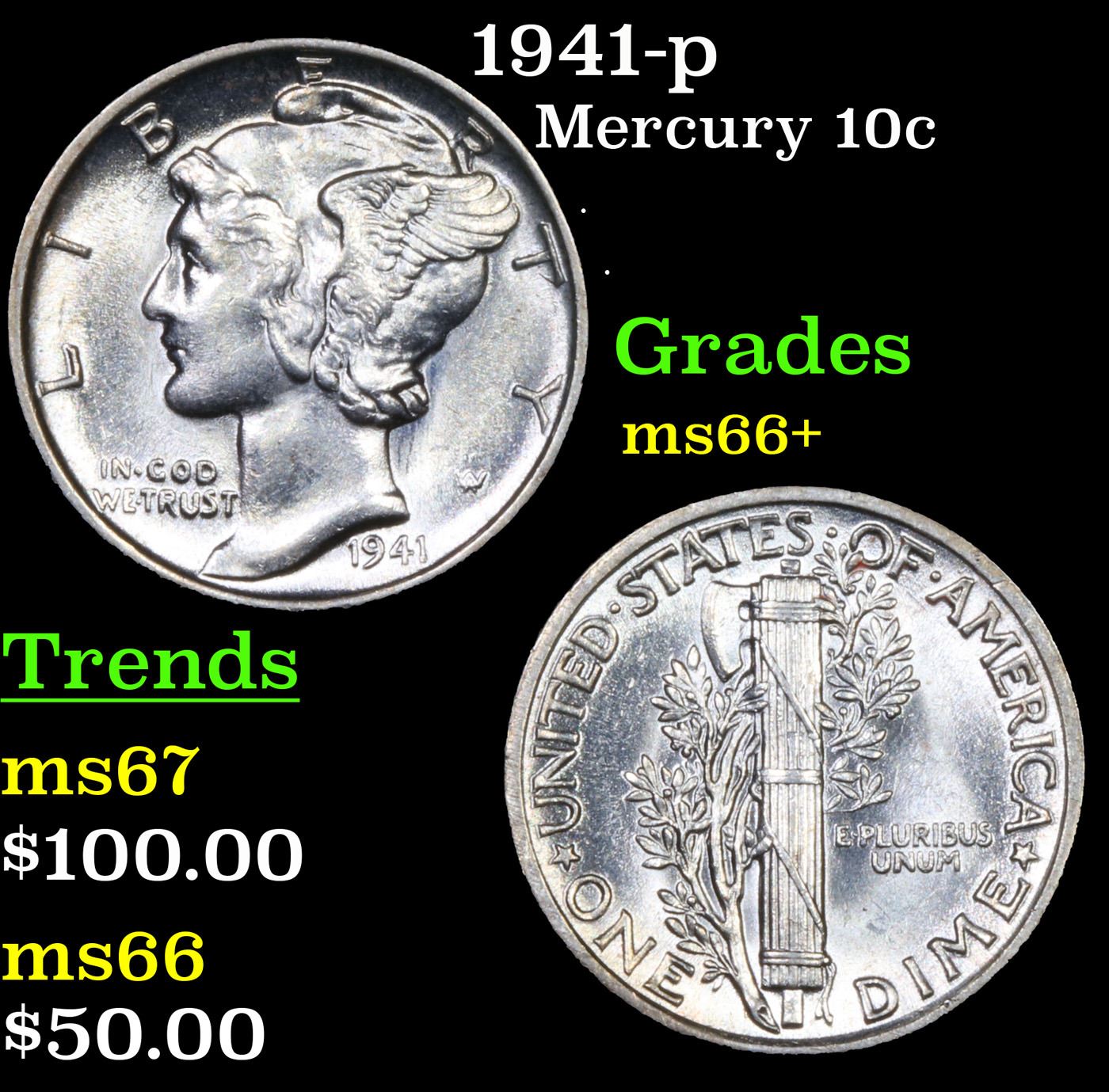 1941-p Mercury Dime 10c Grades GEM++ Unc.