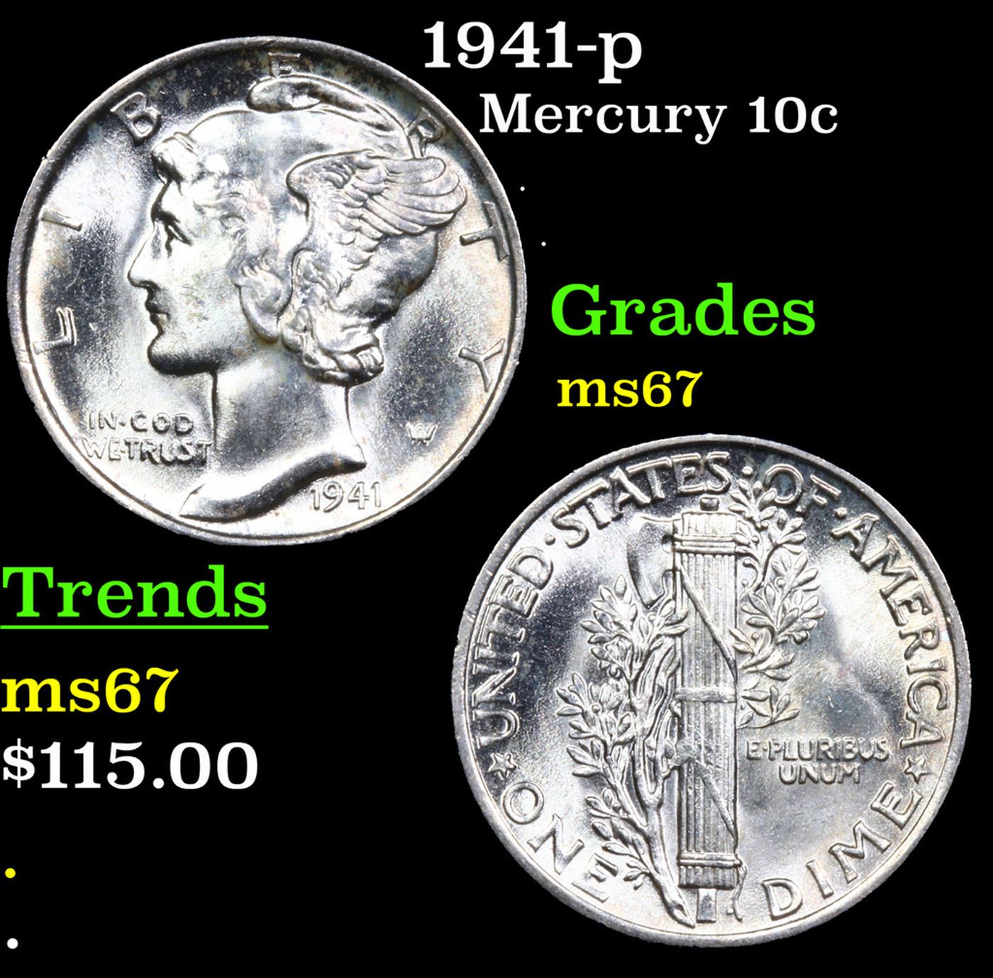 1941-p Mercury Dime 10c Grades GEM++ Unc.